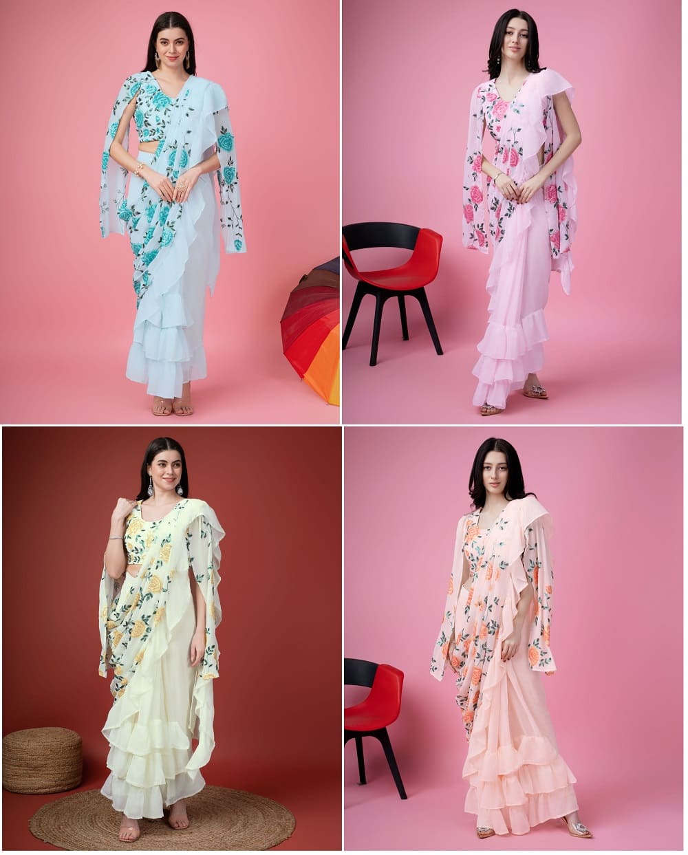 With a wide range of options to choose from, this collection caters to every taste and preference. From bold and vibrant hues to delicate pastels, each saree in this collection tells a unique story. The strategically placed embroidery and embellishments add a touch of elegance, accentuating your grace and poise.