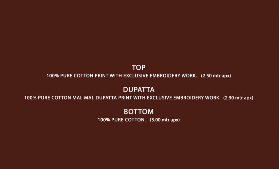 | Fabric Description | Cotton || Fabric Details Attached |