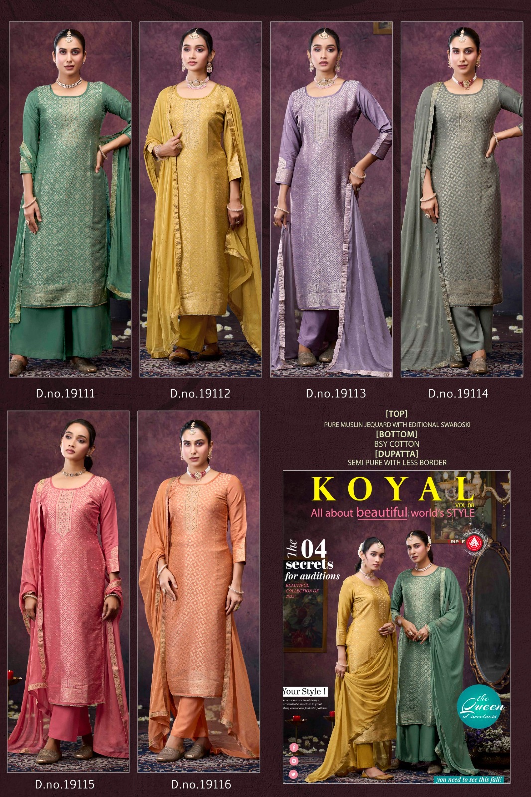 Retailers constantly search for high-value ethnic wear collections that deliver both quality and customer satisfaction. The Four Dots Koyal Vol 8 Muslin Swarovski Work Dress Material meets these expectations by offering premium detailing and fashionable design.