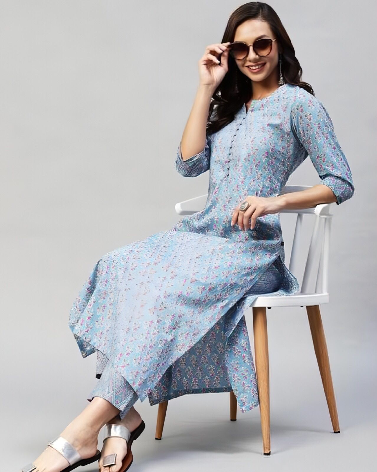 In conclusion, the Jaipuri Printed 01 Pure Cotton Kurti With Pant Collection by Fashion Exports celebrates the fusion of tradition and modernity. Elevate your wardrobe and let your fashion choices echo the legacy of Jaipur's art while staying in tune with contemporary sensibilities. Each ensemble is more than just clothing; it's a celebration of style, comfort, and the beauty of individuality.
