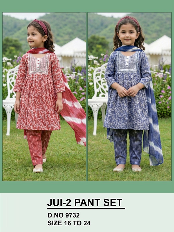 Printed kids kurti sets are always in demand due to their affordability and stylish appeal. The Jui 9731 To 9733 Capsule collection stands out in the wholesale market because of its trendy designs and reliable quality.