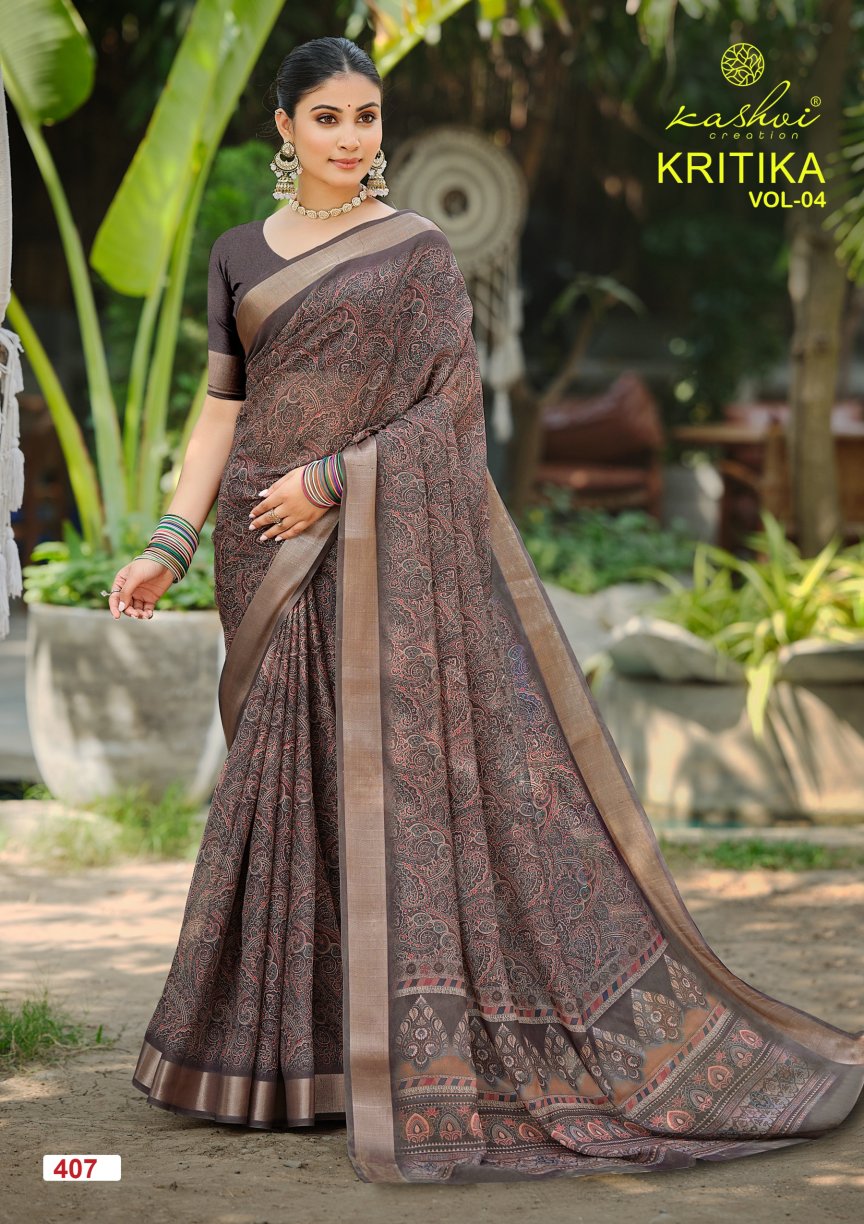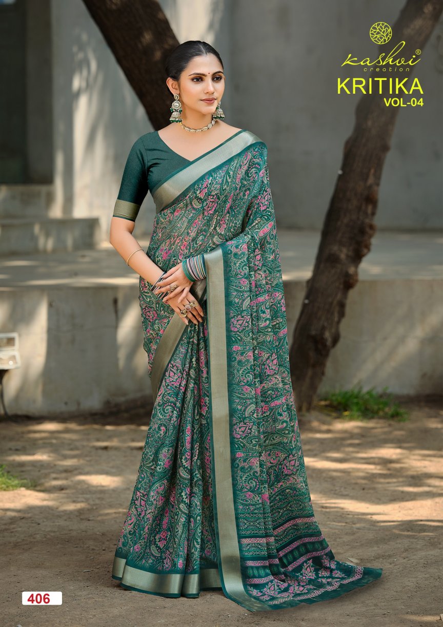| Catalog Name | Kashvi Kritika Vol 04 Dull Moss Digital Printed Saree Collection |