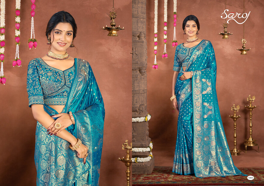 | Catalog Name | Saroj Royal Taj Satin Saroski Vol 1 Saroski Work Silk Saree Collection |