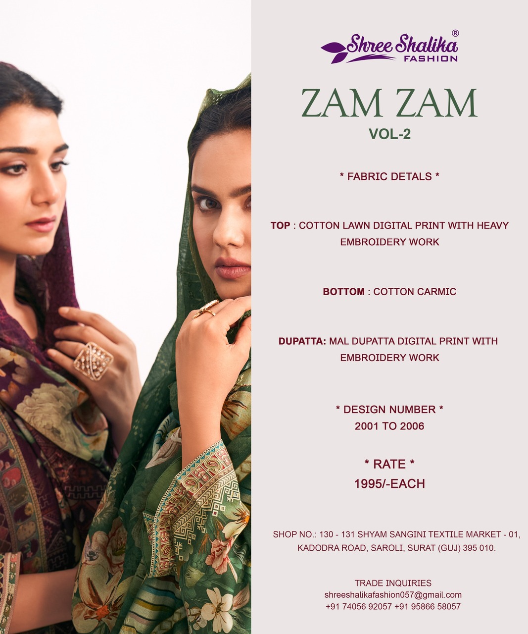 | Catalog Name | Shree Shalika Zam Zam Vol 2 Lawn Cotton Dress Material Collection |