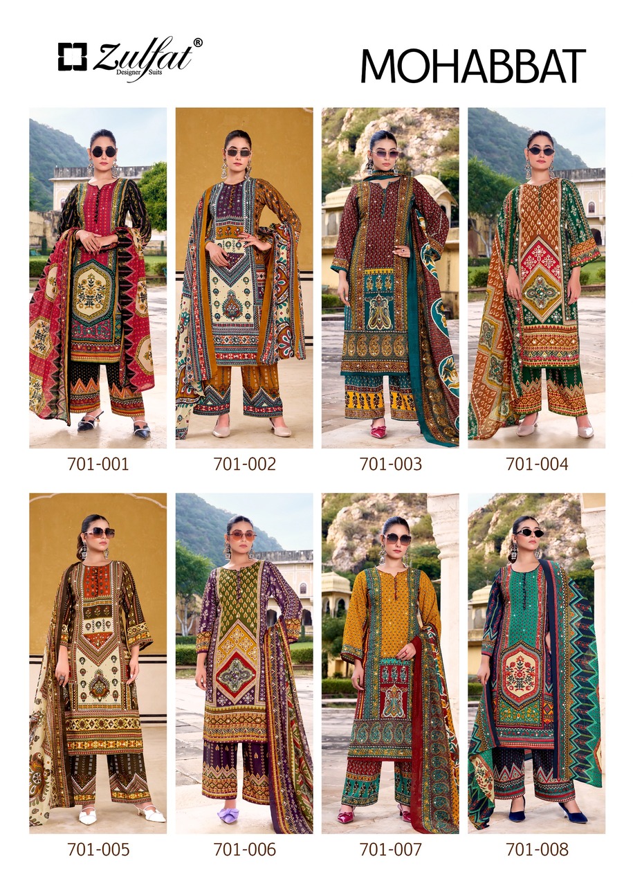 | Catalog Name | Zulfat Mohabbat Rayon Designer Dress Material Collection |
