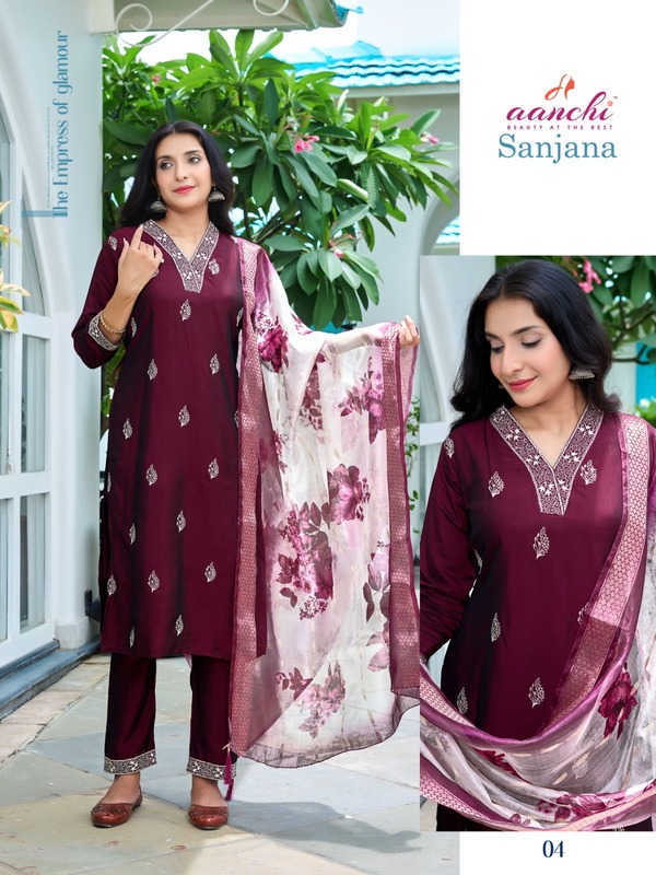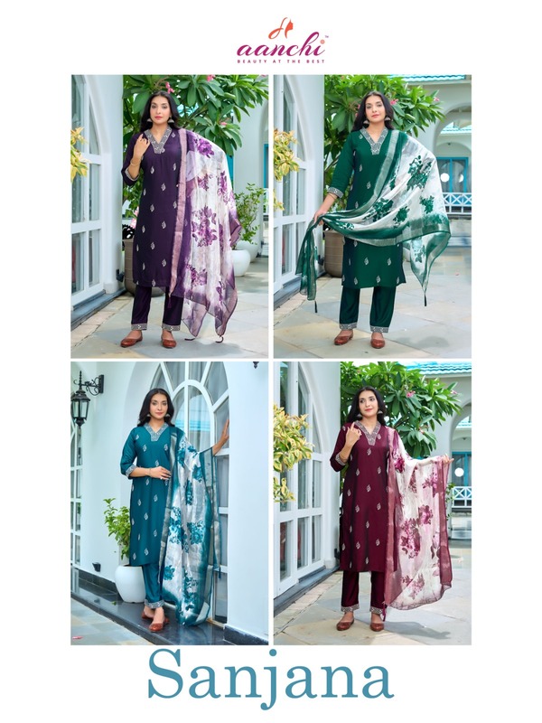 | Catalog Name | Aanchi Sanjana Rangila Silk Designer Kurti Pant And Dupatta Collection |