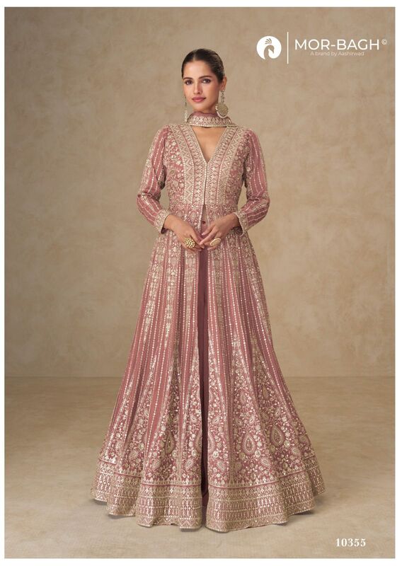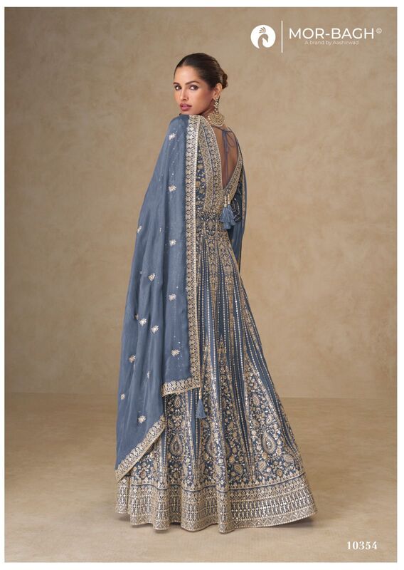 Shop Aashirwad Mor Bagh Janaki Chinon Silk Designer Readymade Suits – elegant embroidery, luxurious fabric & perfect for weddings & parties.