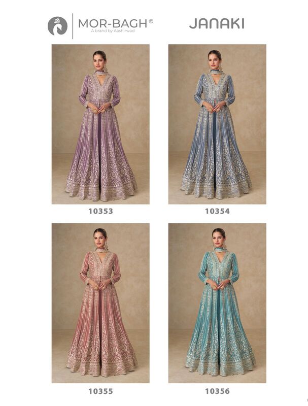 | Catalog Name | Aashirwad Mor Bagh Janaki Chinon Silk Designer Readymade Suits Collection |