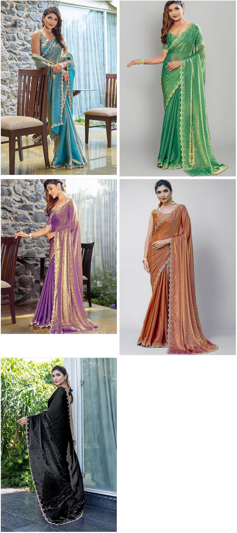 | Fabric Description | Saree/Blouse Fabric: Original Chiffon | Saree Length: 5.4 mtrs | Blouse Length: 0.8 Mtrs |