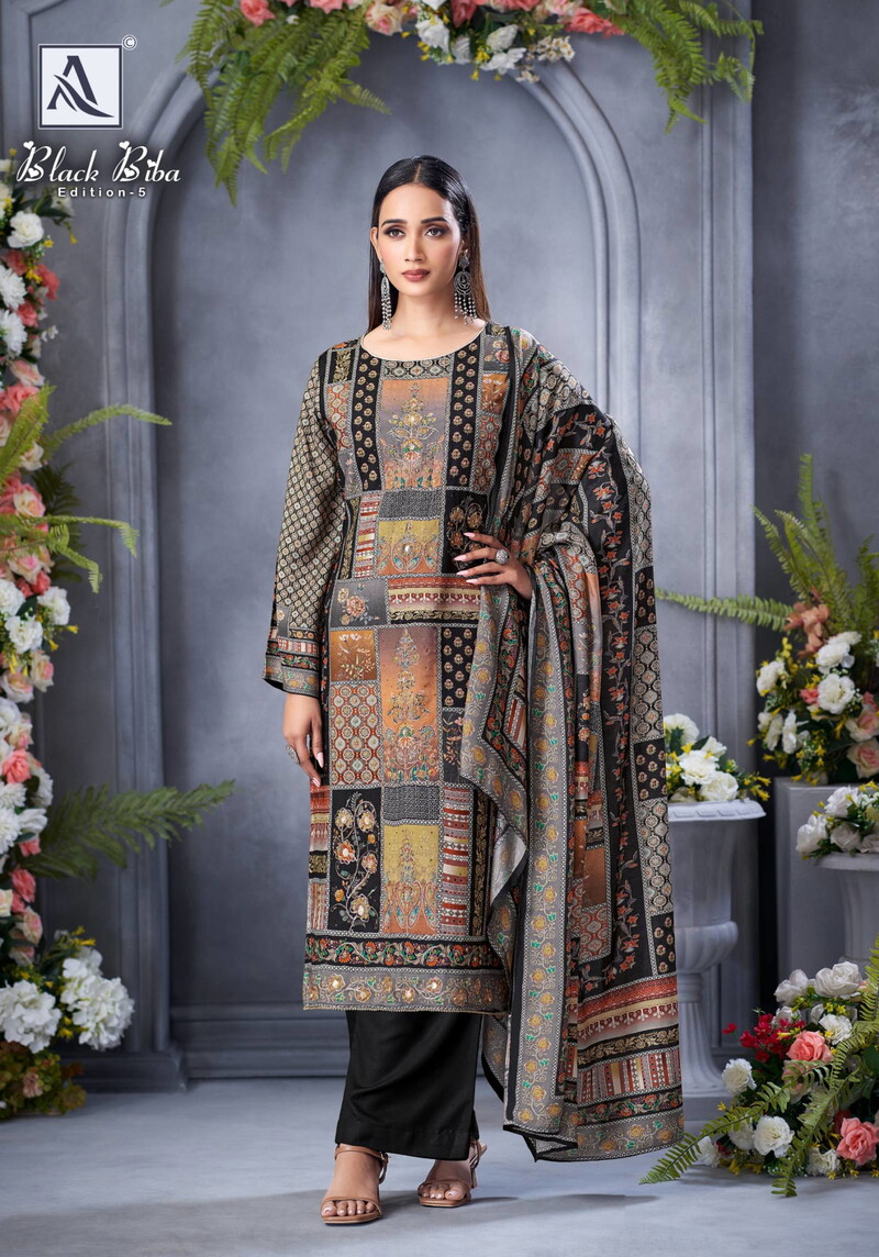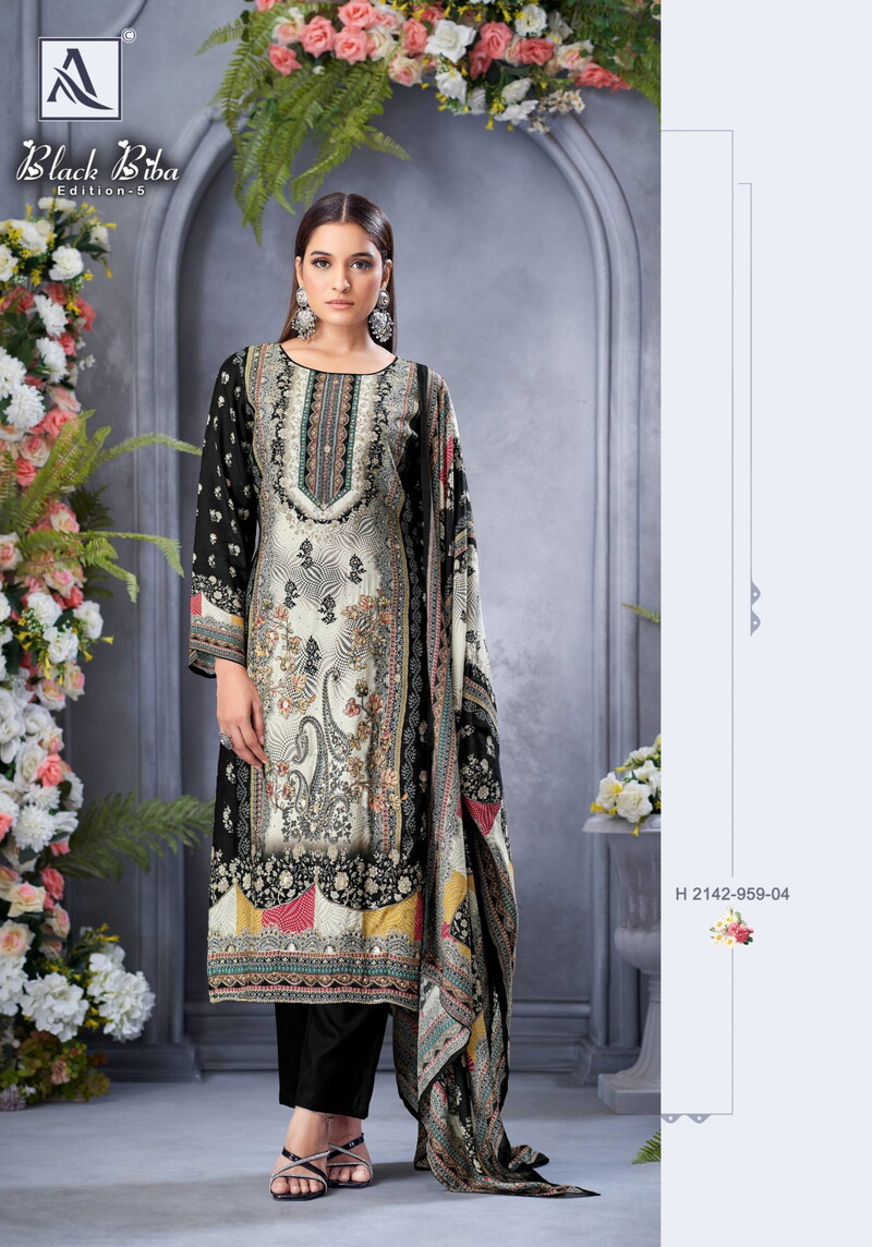| Catalog Name | Alok Black Biba Edition 5 Maslin Designer Printed Dress Material Collection |