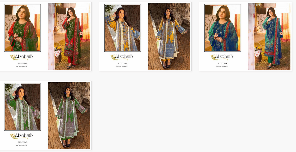 | Catalog Name | Alzohaib Az 1334 And 1335 Cotton Pakistani Suits Cotton Dupatta |