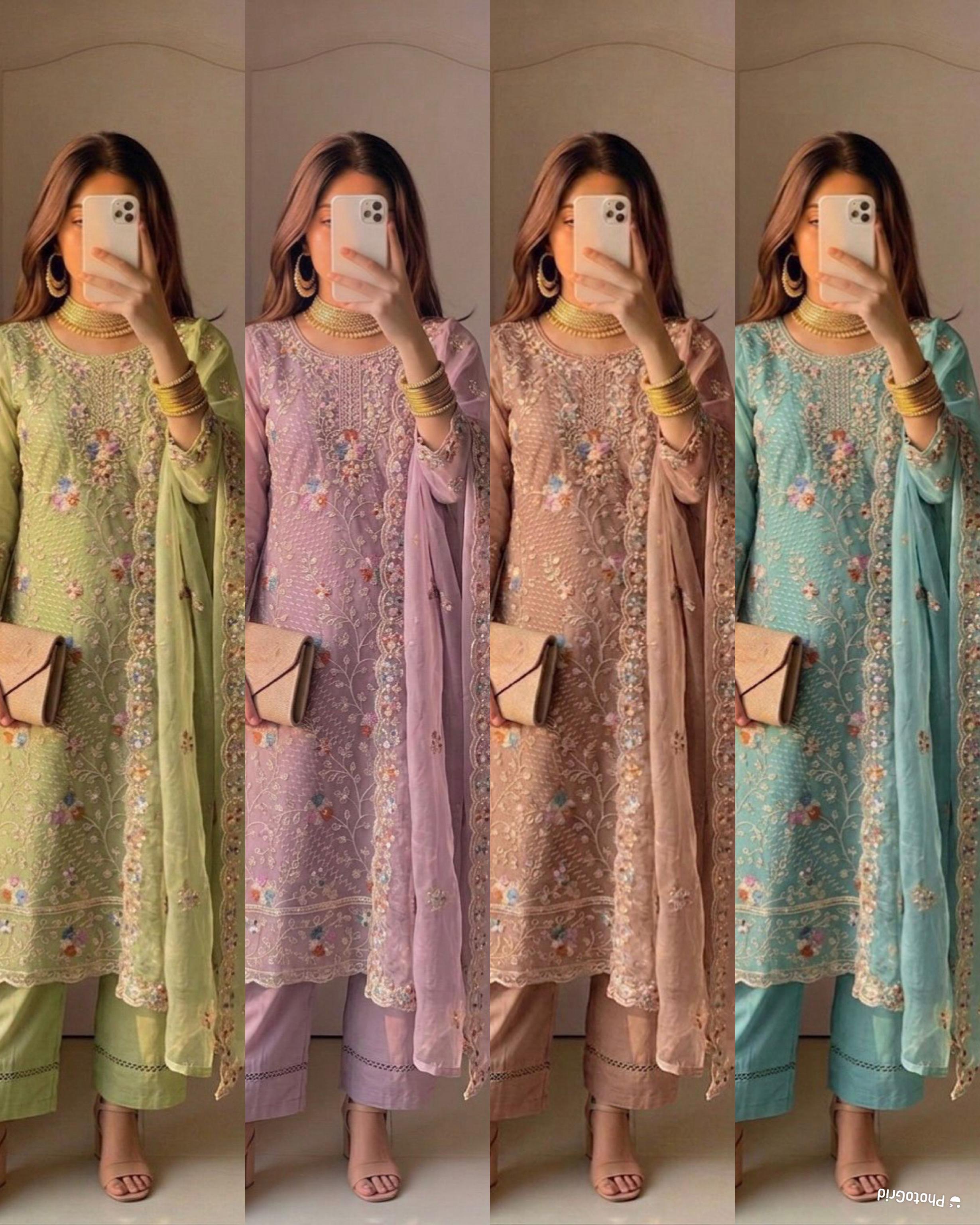 Fabric quality plays a crucial role in determining the overall comfort and appearance of any outfit. The Anaya Vol 3 Organza Silk Embroidered Salwar Suits Collection is crafted using premium Organza Silk fabric known for its lightweight texture and elegant shine. Retailers dealing in readymade salwar suit wholesale price collections often prefer Organza Silk because it enhances the beauty of embroidery work.