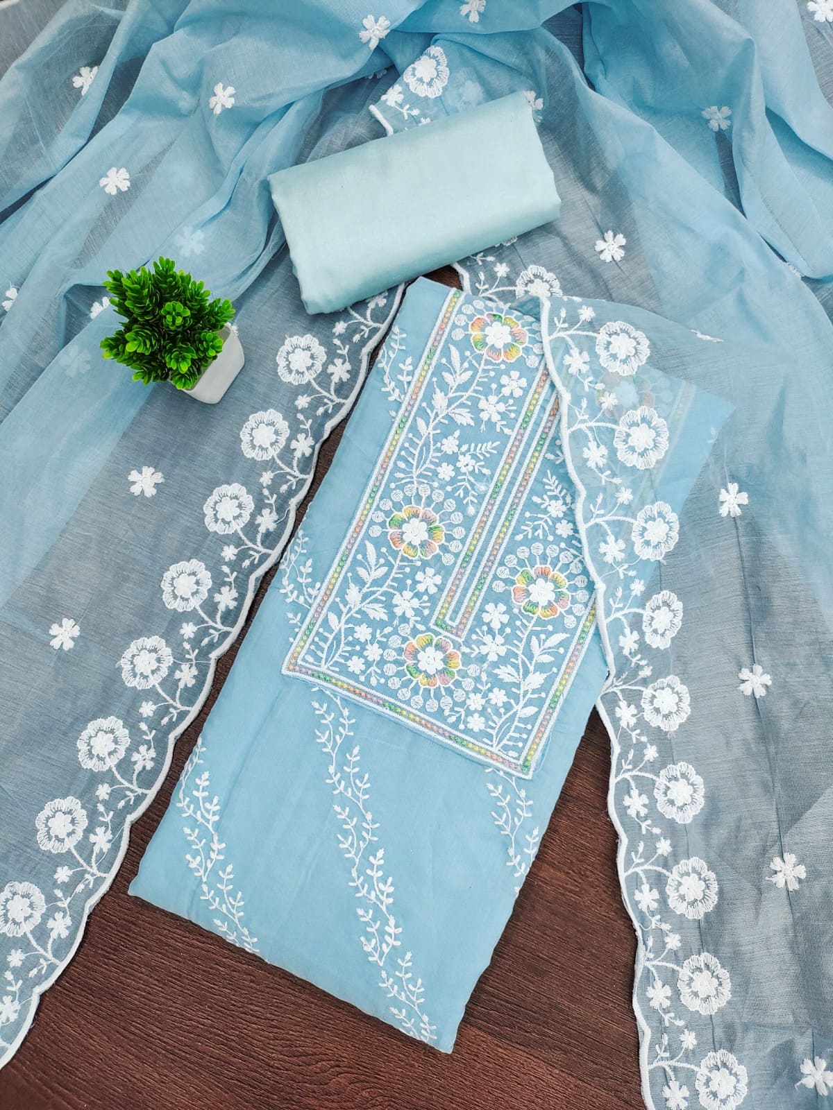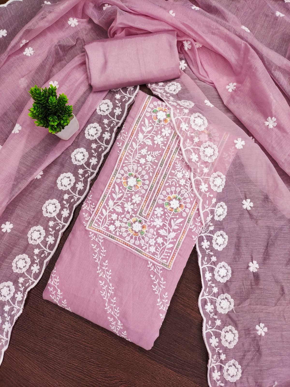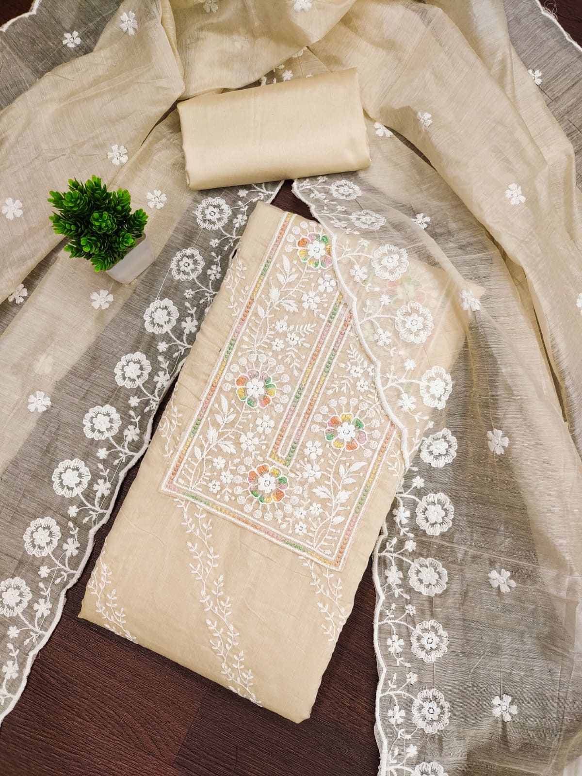 Shop the Chanderi Cotton Embroidery Dress Material Collection featuring elegant designs, soft fabric, and intricate embroidery. Perfect for festive and casual wear.