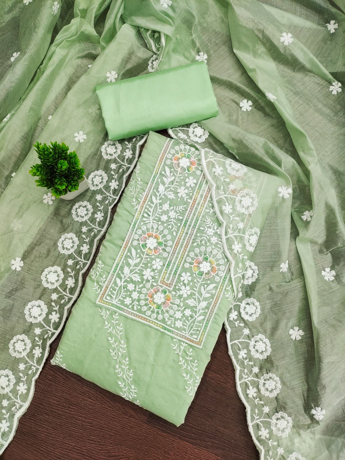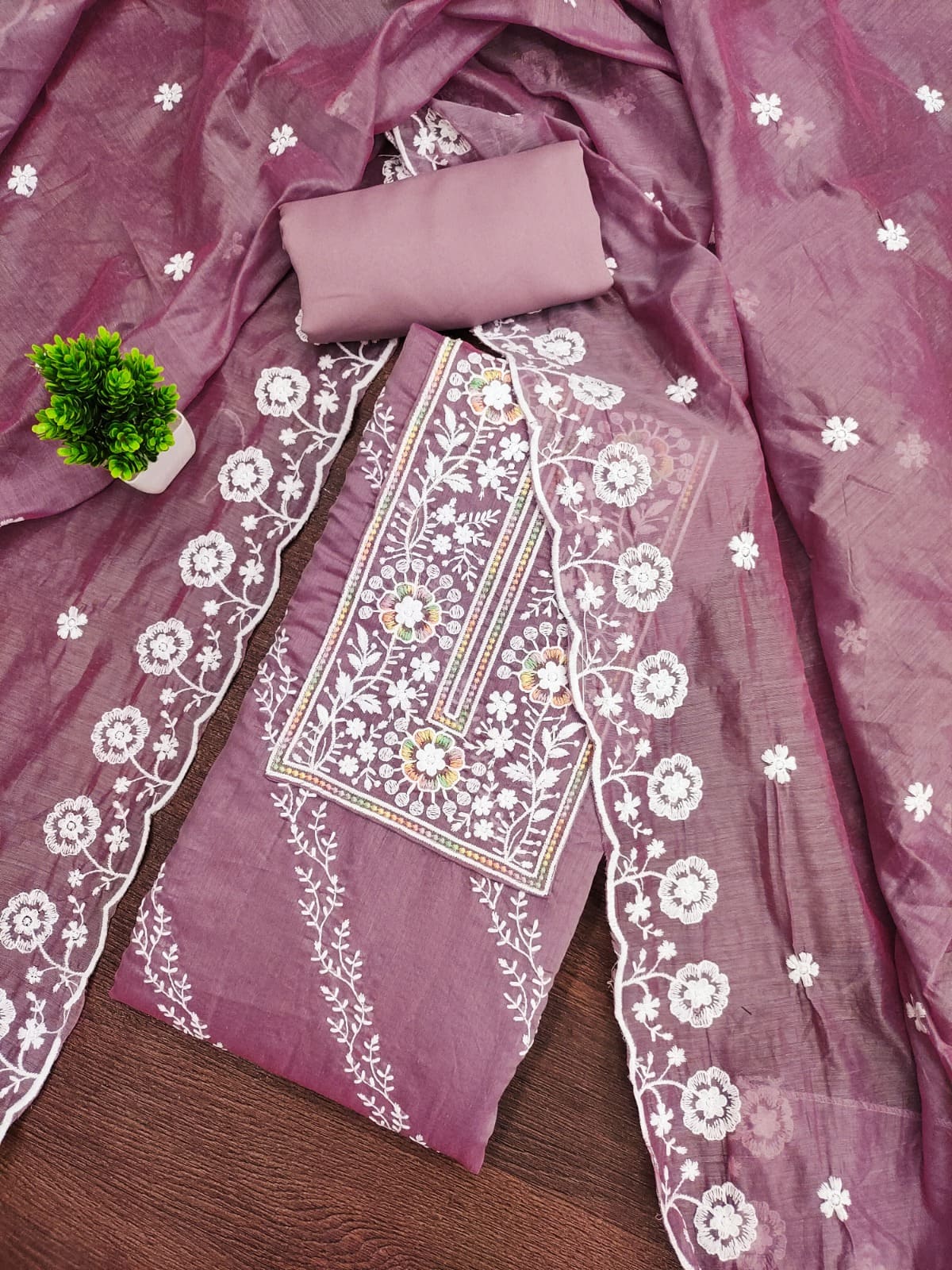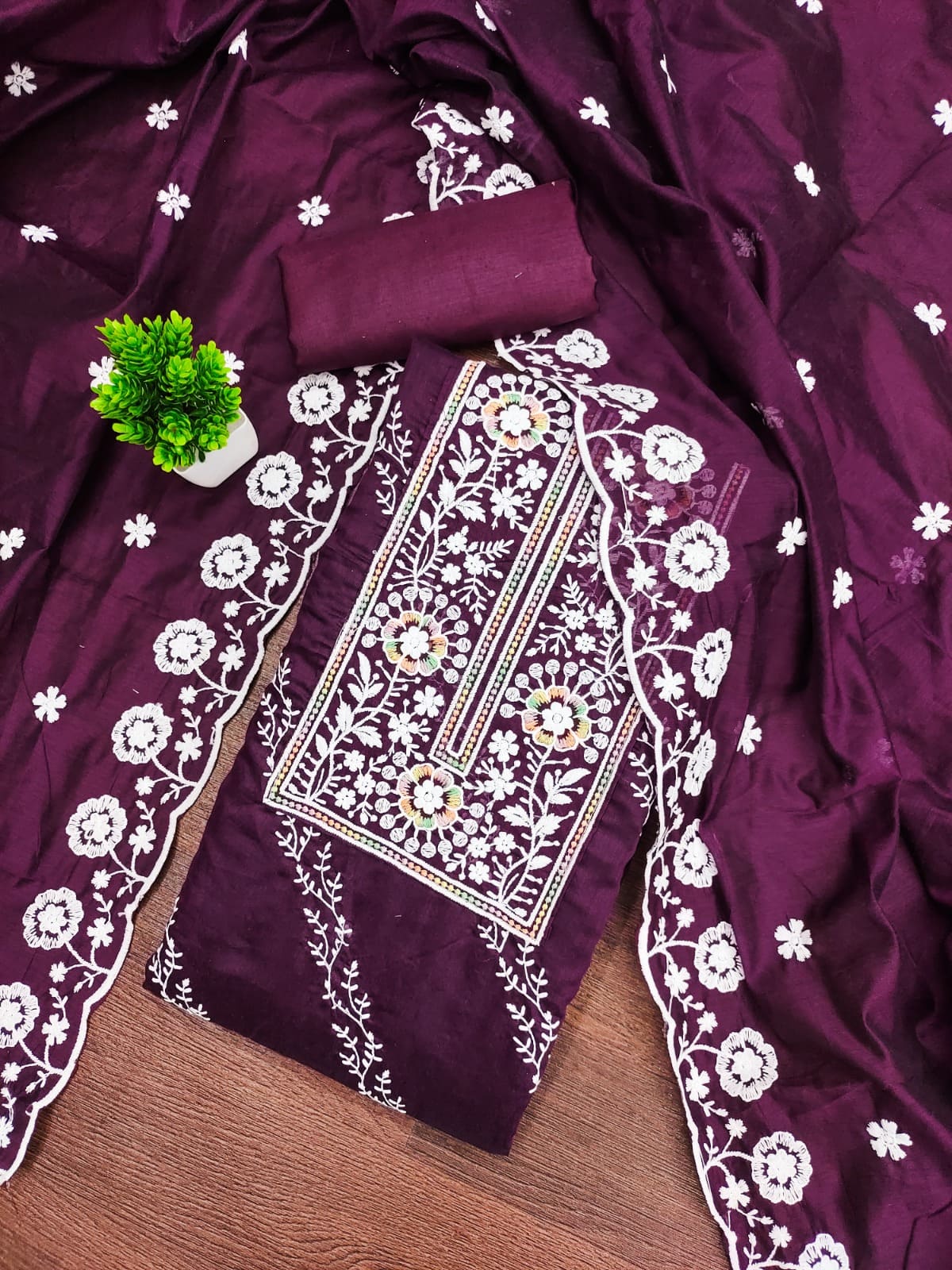 Shop the Chanderi Cotton Embroidery Dress Material Collection featuring elegant designs, soft fabric, and intricate embroidery. Perfect for festive and casual wear.