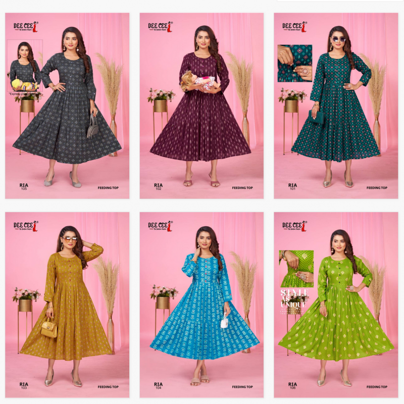 | Catalog Name | Deecee Ria Rayon Anarkali Flared Feeding Kurtis Collection |