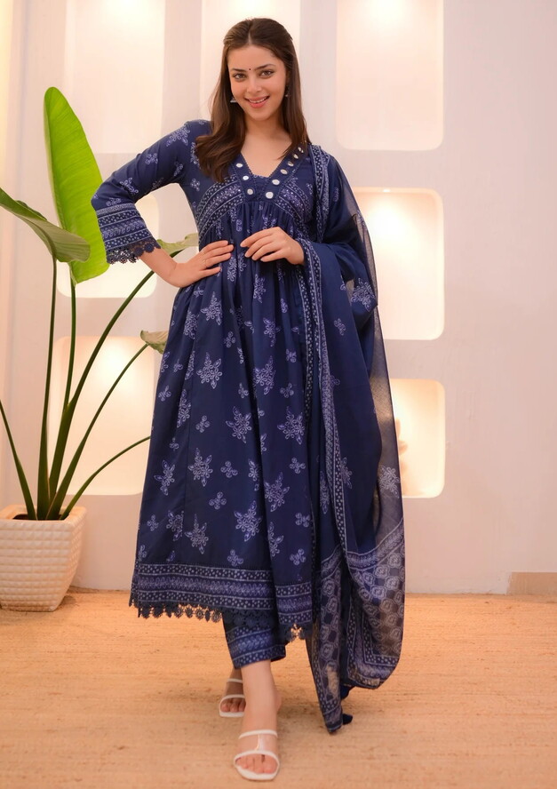 Explore our Daily Wear Printed Alia Cut Kurti with matching Pant and Dupatta collection stylish, comfortable, and perfect for everyday elegance.