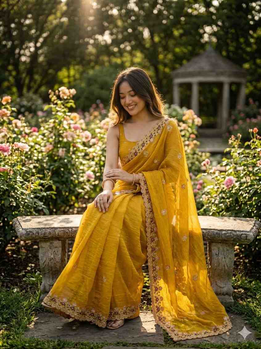 | Fabric Description | Saree Fabric: Crunchy Saree | Work: Seqwance Work With Embroidery Work | Blouse Fabric: Crunchy | |