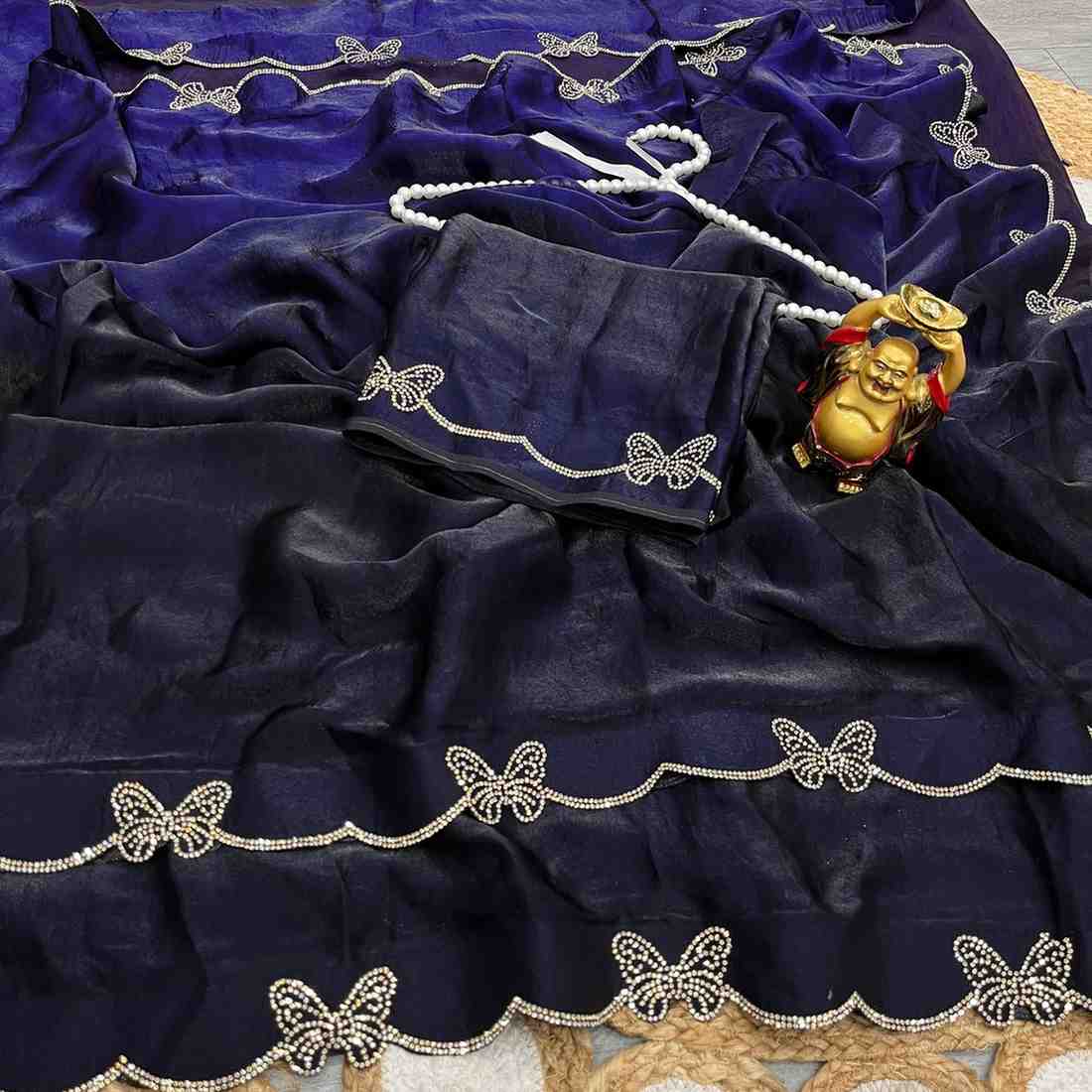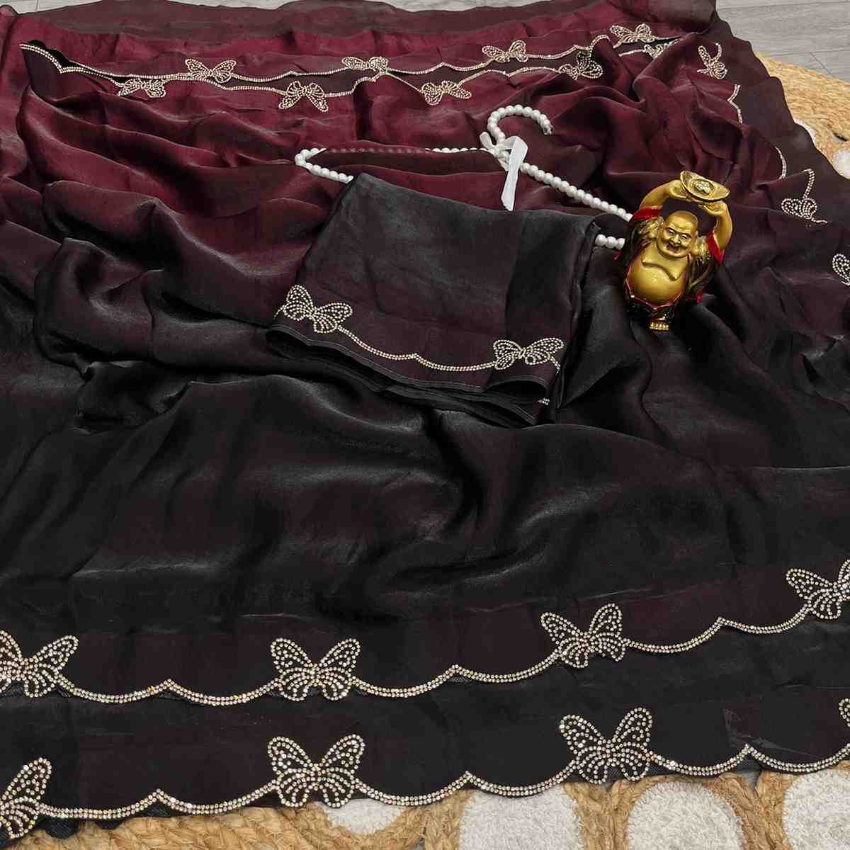| Fabric Description | sparkle silk || Saree Fabric- Dual shade Space silk | Saree Work- Jarkhan work | Blouse fabric- space silk with jarkhan work |