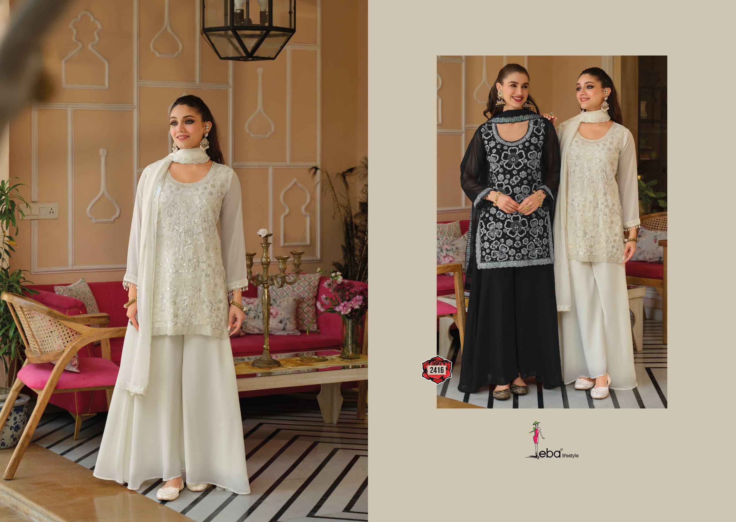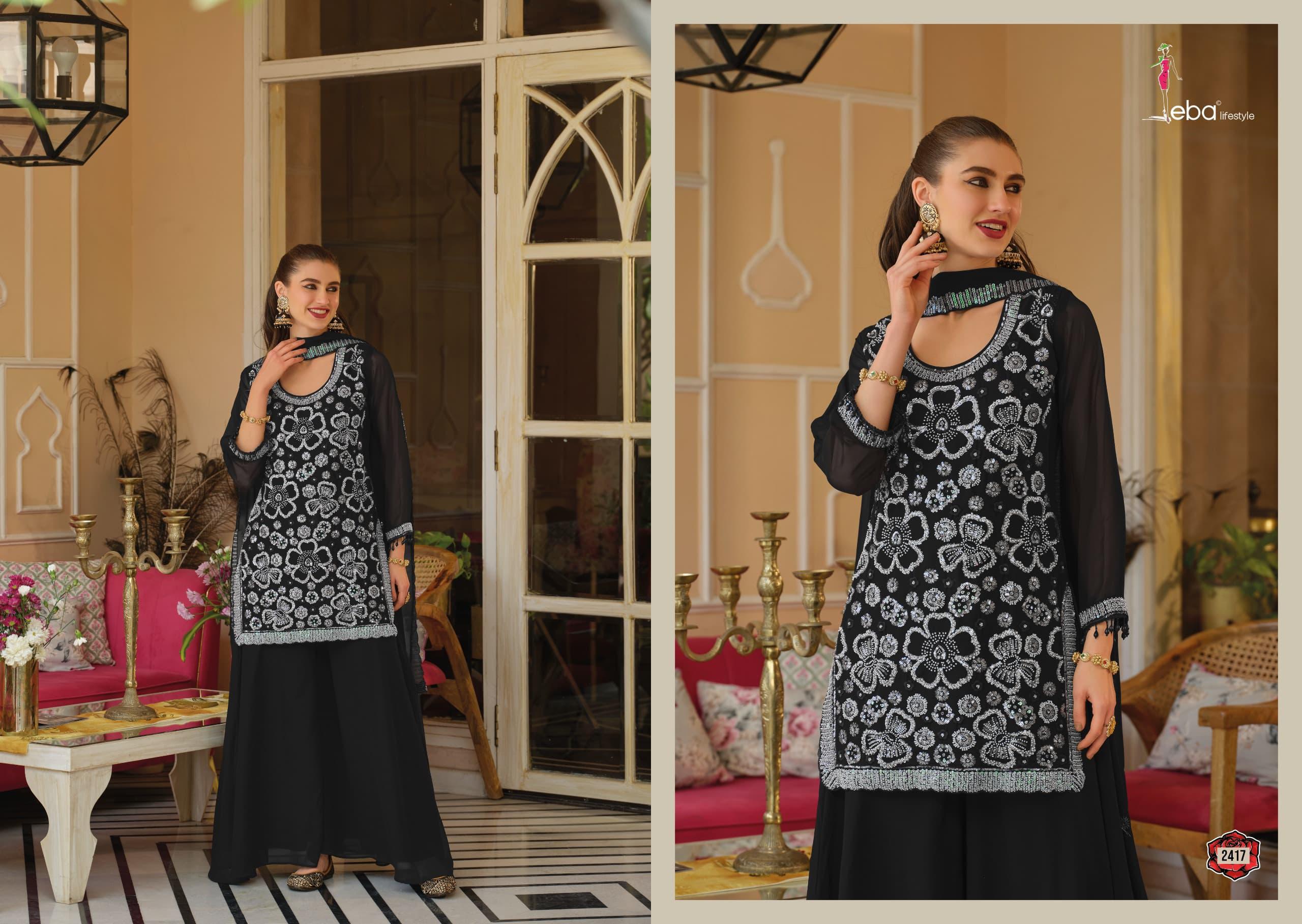 | Catalog Name | Eba Rosy Black And White Beats Work Salwar Palazzo With Dupatta |