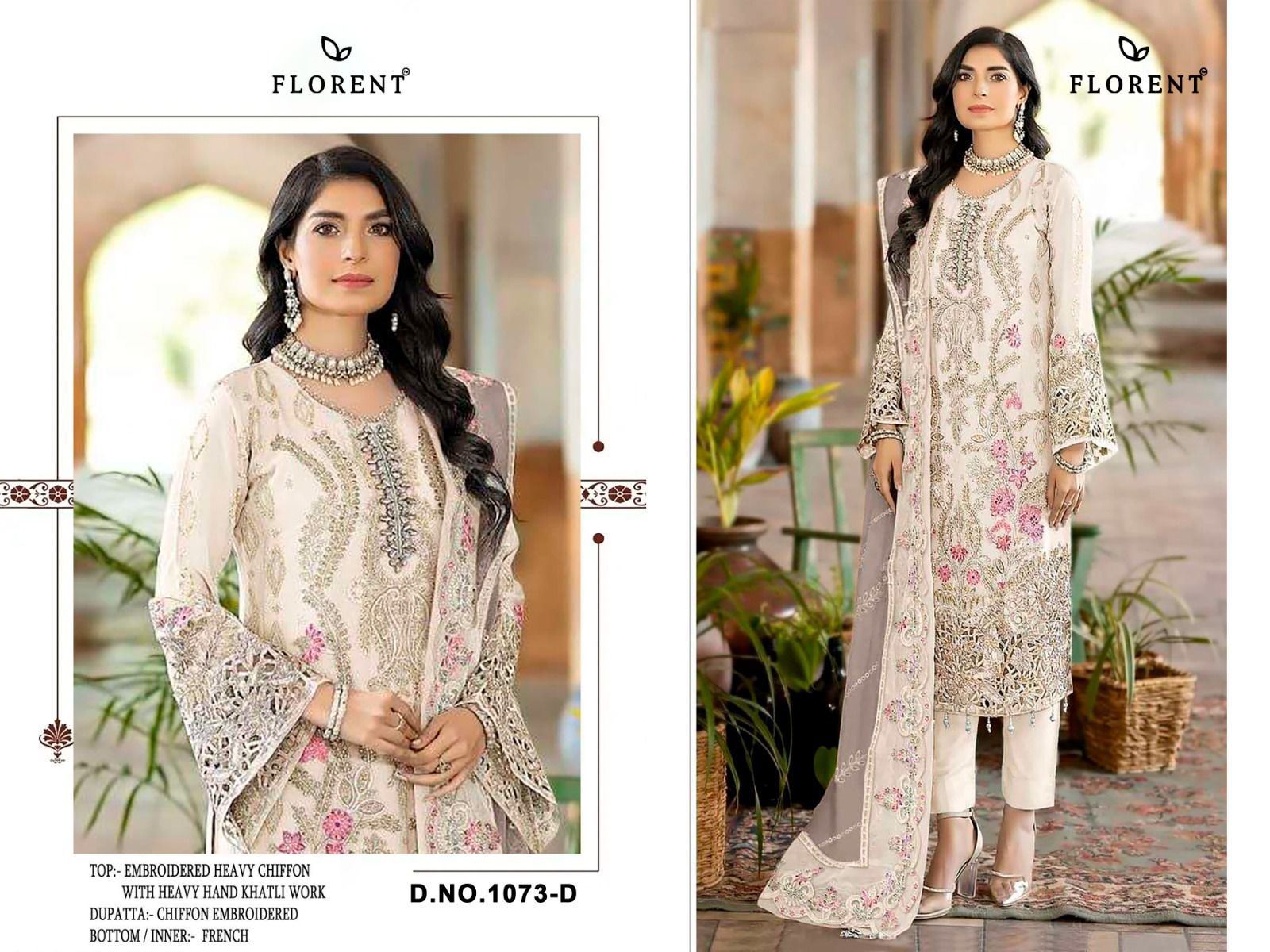 Add the Florent 1073 A To D Chiffon Pakistani Salwar Kameez collection to your stock today to offer customers fashionable, elegant, and high-quality ethnic outfits suitable for festive and party occasions.