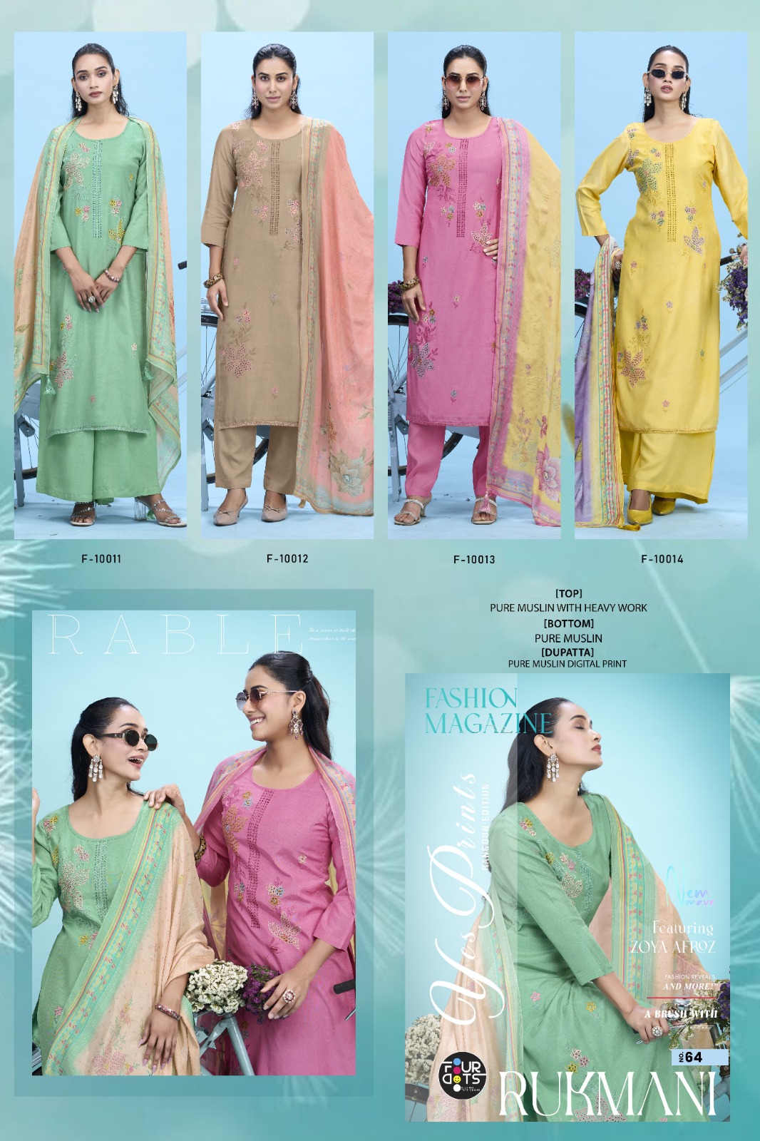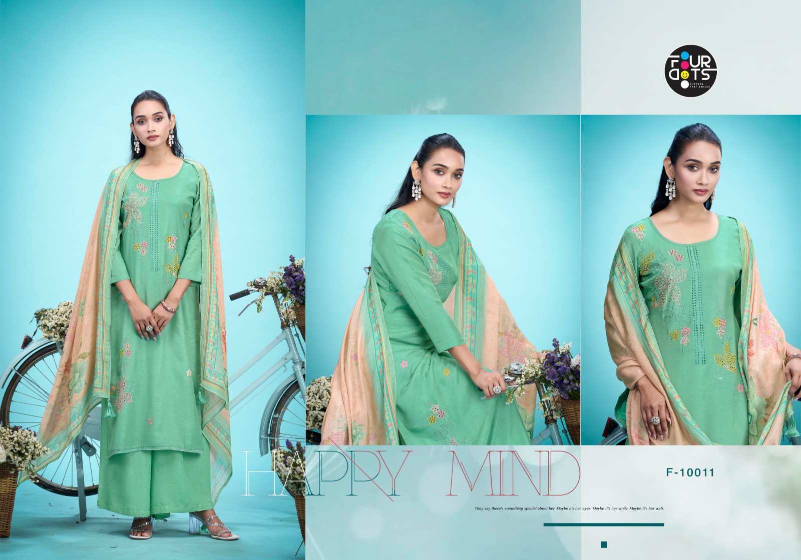 The Four Dots Rukmini Muslin Embroidered Dress Material Collection is a beautifully crafted ethnic wear range designed for retailers and wholesalers looking for premium quality outfits at an affordable embroidery dress material wholesale price. This collection features stylish muslin fabric enhanced with elegant embroidery work, making it a perfect choice for modern women who prefer comfort and sophistication.