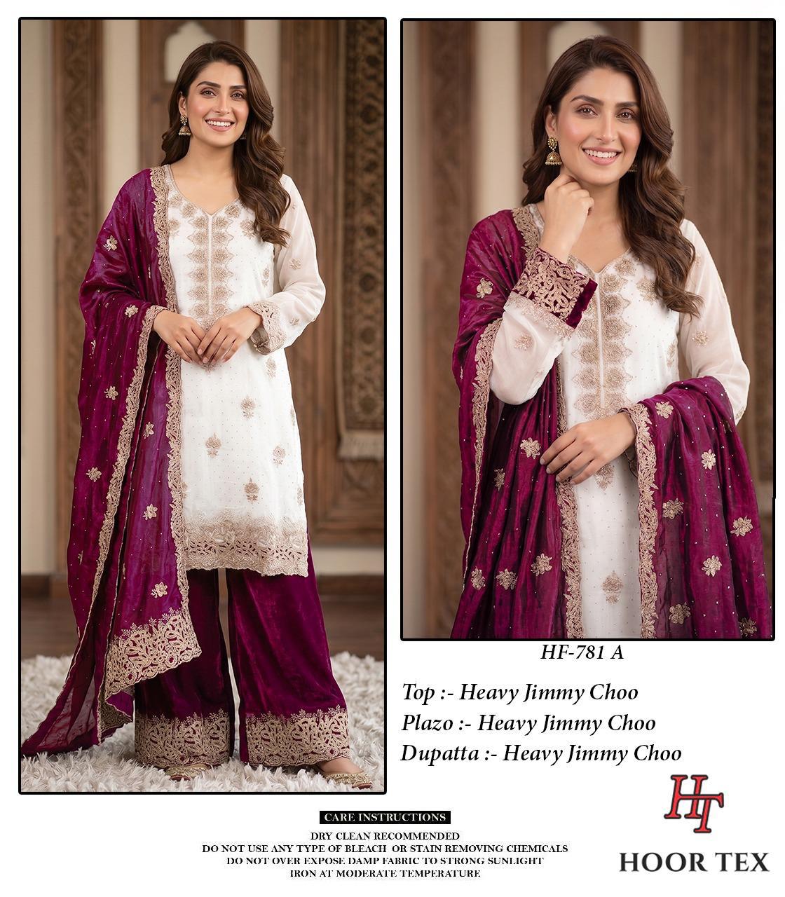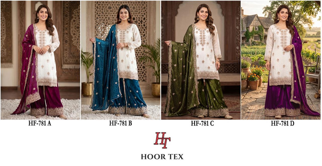 The Hoor Tex 781 A To D Jimmy Choo Designer Salwar Kameez collection is a premium ethnic wear range designed for wholesalers, retailers, and boutique owners looking for stylish outfits at the best Designer salwar kameez wholesale price. This elegant collection blends luxury styling with comfortable fabric, making it a top choice for modern ethnic wear buyers.