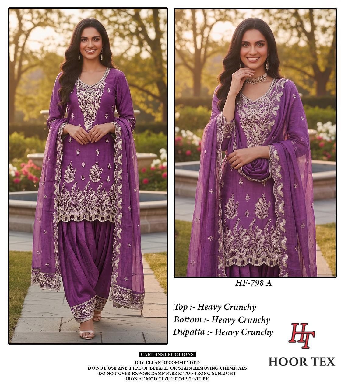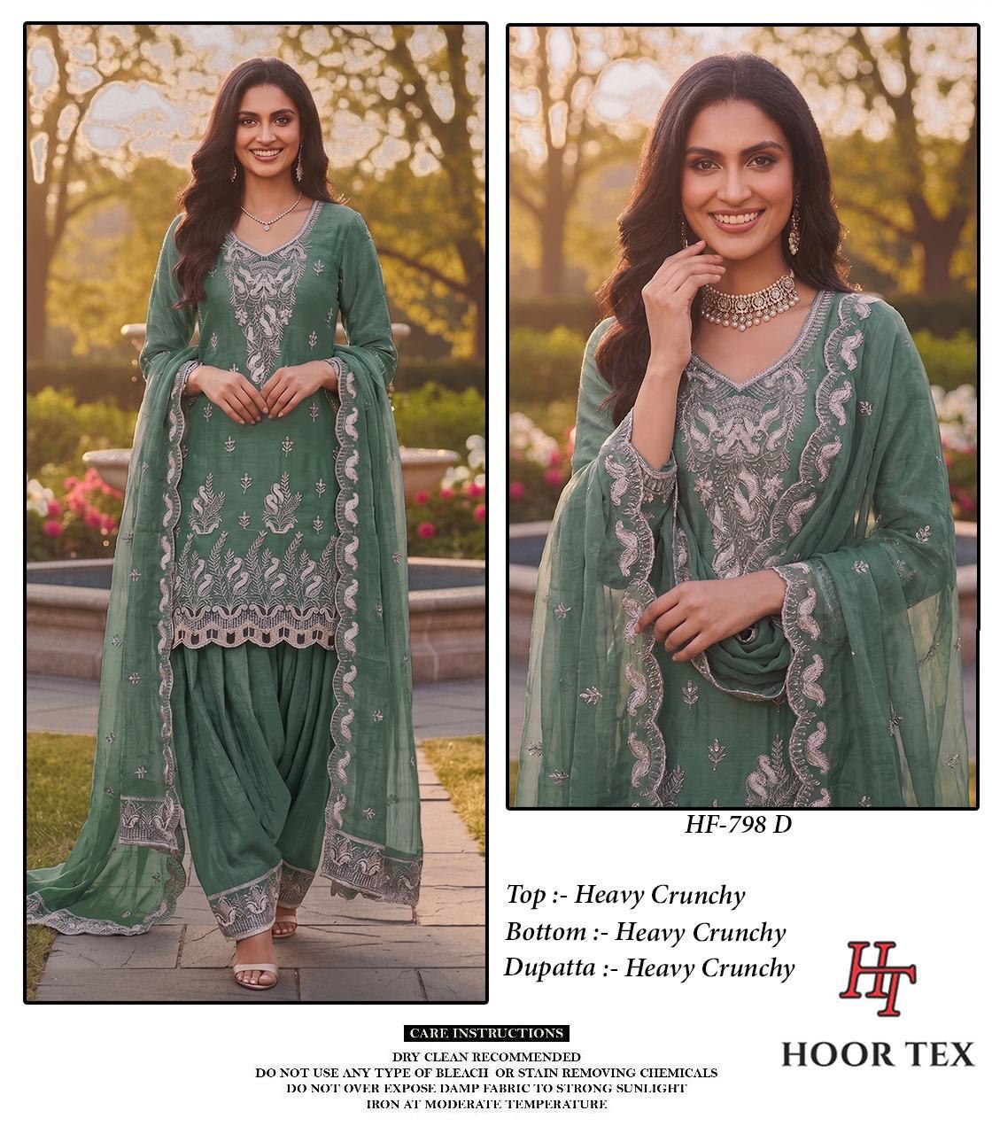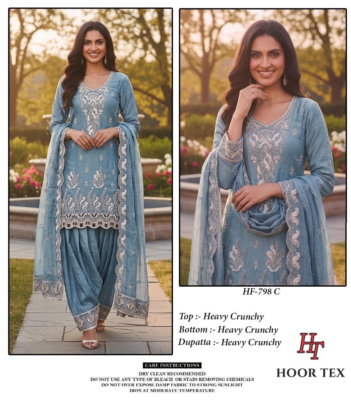 The Hoor Tex 798 A To D Crunchy Readymade Salwar Kameez offers a perfect combination of stylish embroidery, premium crunchy fabric, and modern design patterns. Its versatility makes it suitable for festive, casual, and party occasions.