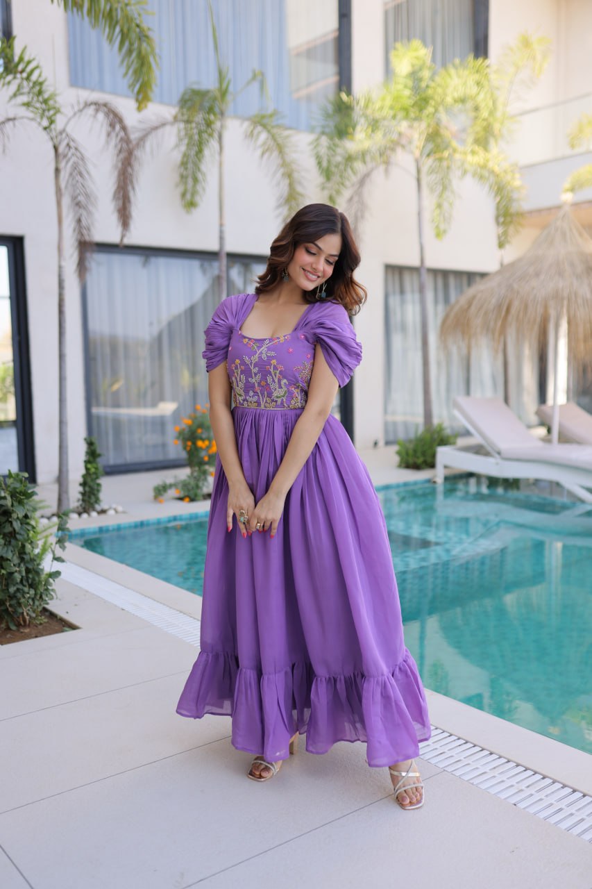 This collection is suitable for weddings, parties, festive celebrations, evening events, and formal gatherings. Retailers offering buy readymade embroidery party wear long gown collections can cater to customers looking for multi-purpose party wear outfits.