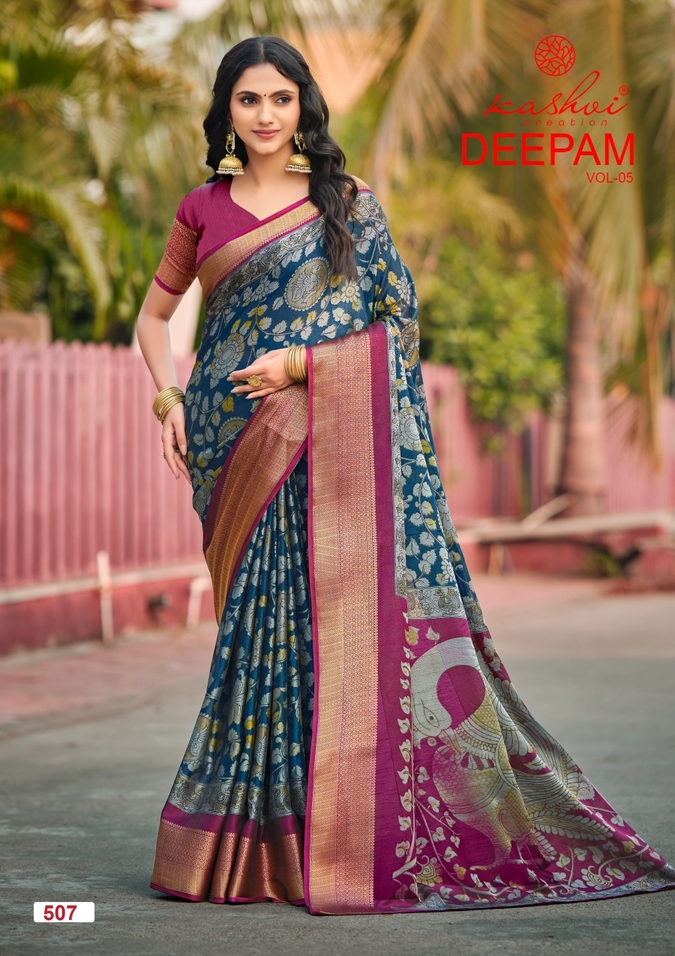 For boutique owners and wholesalers, the Kashvi Deepam Vol 5 Dola Silk Printed Saree Collection is a valuable addition to their inventory. Printed silk sarees are always popular due to their affordability and stylish appeal.
