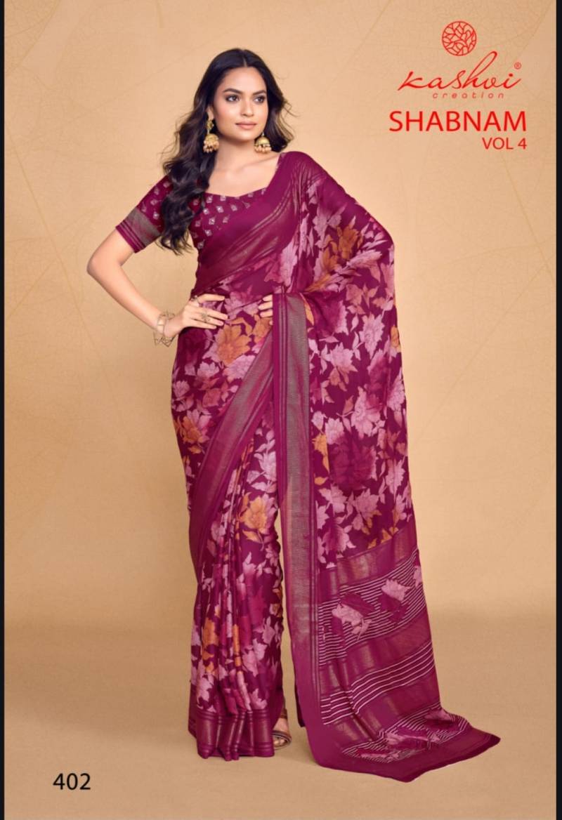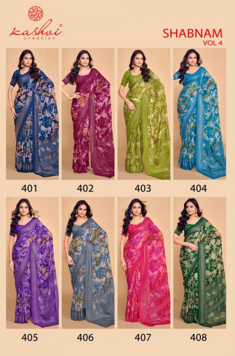 | Catalog Name | Kashvi Shabnam Vol 4 Foil Printed Saree Collection |