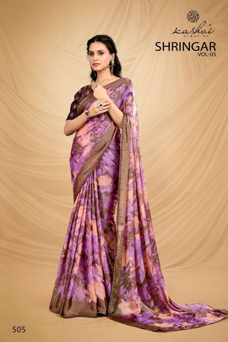 | Catalog Name | Kashvi Shringar Vol 5 Brasso Fancy Foil Printed Saree Collection |