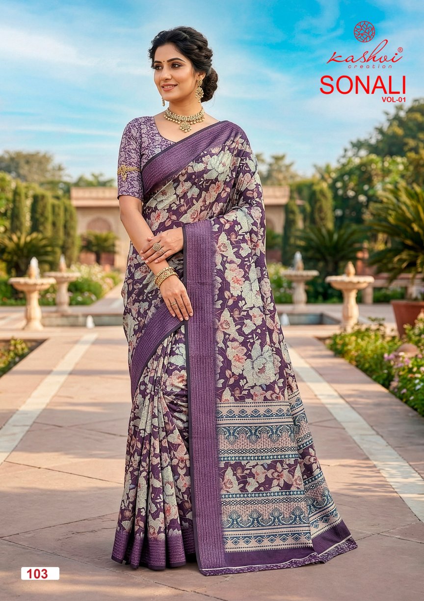 Buy Simple daily wear sarees online – Kashvi Sonali Vol 1 in premium vichitra fabric at wholesale price. Lightweight, comfortable, trendy prints for everyday use. Shop Now FashionExport.