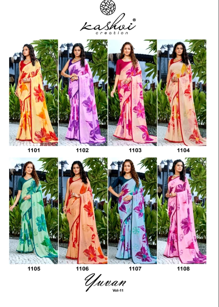 | Catalog Name | Kashvi Yuvan Vol 11 Party Wear Printed Saree Collection |