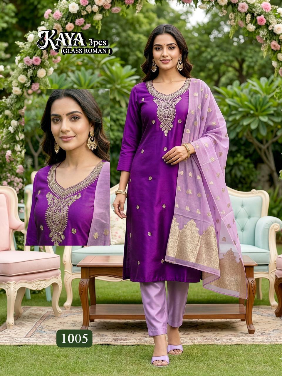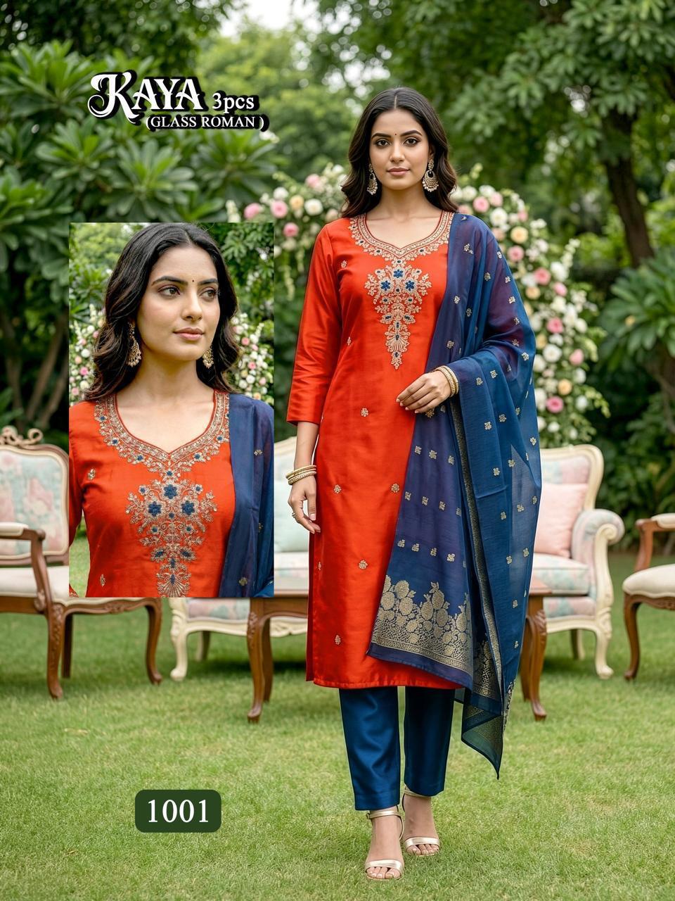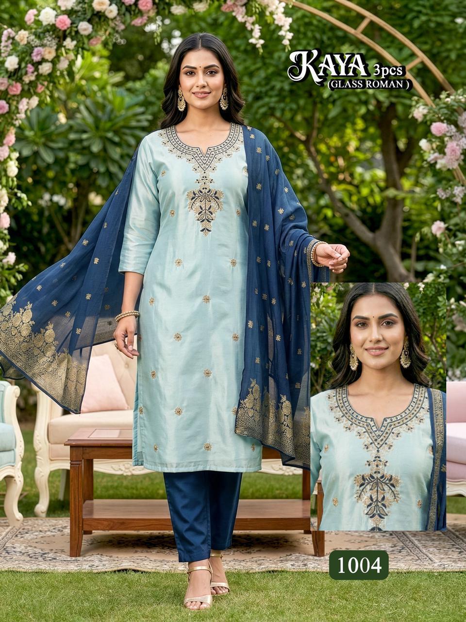 Festive Wear Kurti Bottom With Dupatta Set Kaya D No 1001 To 08 in Roman glass fabric with rich embroidery work and elegant ethnic design. Buy at wholesale price from FashionExport. Perfect for festival wear. Shop Now
