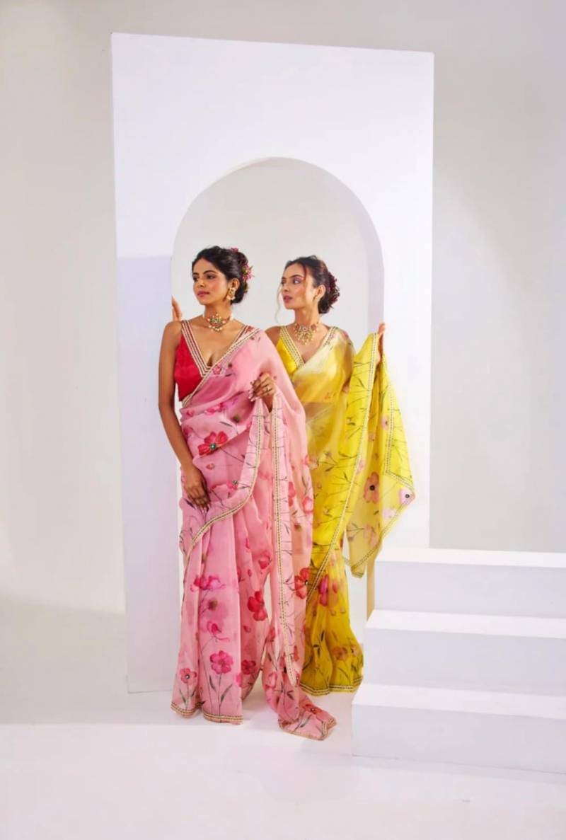 Elevate your party look with our stunning Flower Printed Party Wear Saree Collection. Shop now for the latest trends in floral prints and stand out at any event.