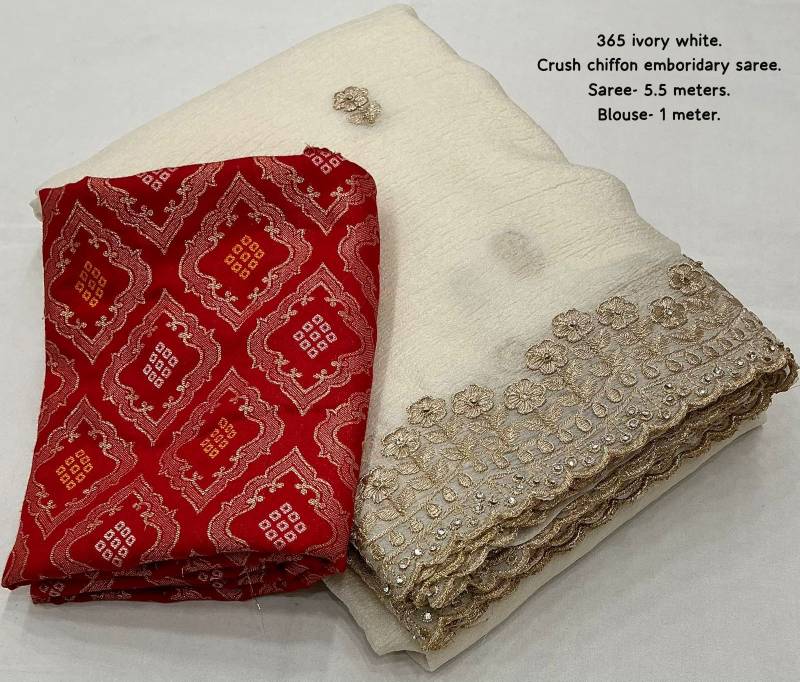 | Fabric Description | Fancy fabrics || Saree : Soft Crunchy Crush With Zari Embroidery And Stone Work ( 5.50 mtr )| Blouse : Contrast Patola Styled Banarasi ( 1.00 Mtr ) |
