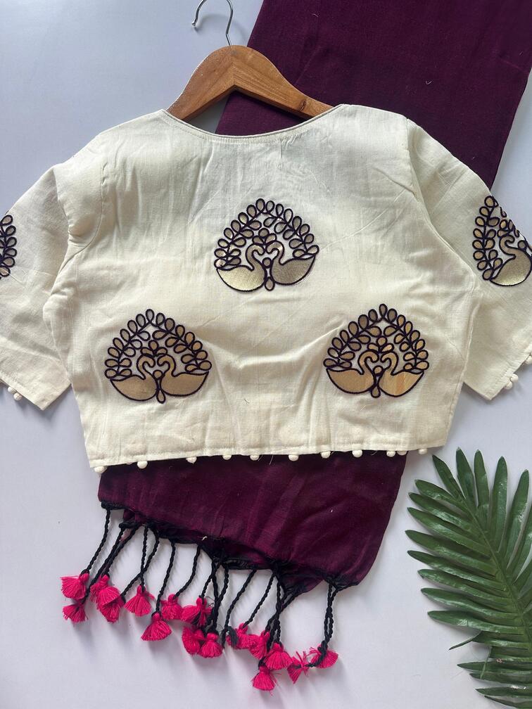 | Fabric Description | Saree/Blouse :- Khadi Cotton With Thread Work |