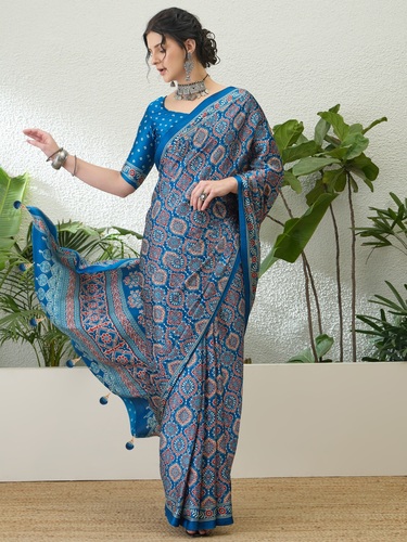 | Fabric Description | Saree :- Semi Modal Ajrakh Printed Saree Collection |