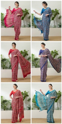 Crafted using high-quality semi modal fabric, this collection ensures a soft texture, lightweight feel, and comfortable draping experience. Semi modal fabric enhances the beauty of traditional Ajrakh prints while providing long-lasting durability. Retailers sourcing this collection at competitive printed ajrakh saree wholesale price rates can easily meet the needs of customers who prefer both comfort and elegant design.