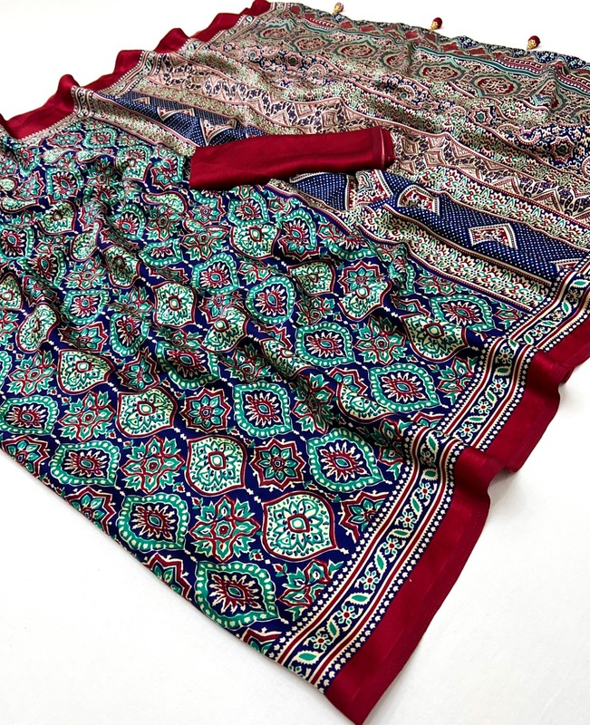 | Fabric Description | modal || Saree :- Semi Modal With Ajrakh Printed Saree |