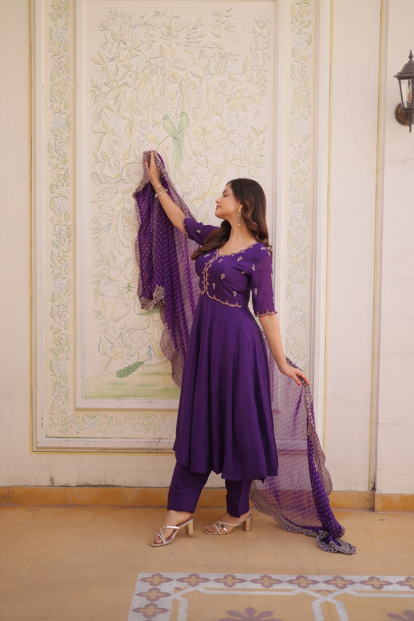Mul Chanderi fabric ensures breathability and smooth texture, making it suitable for long-hour wear. Customers browsing embroidery work kurti set wholesale price collections usually choose lightweight materials that offer easy movement and stylish draping.