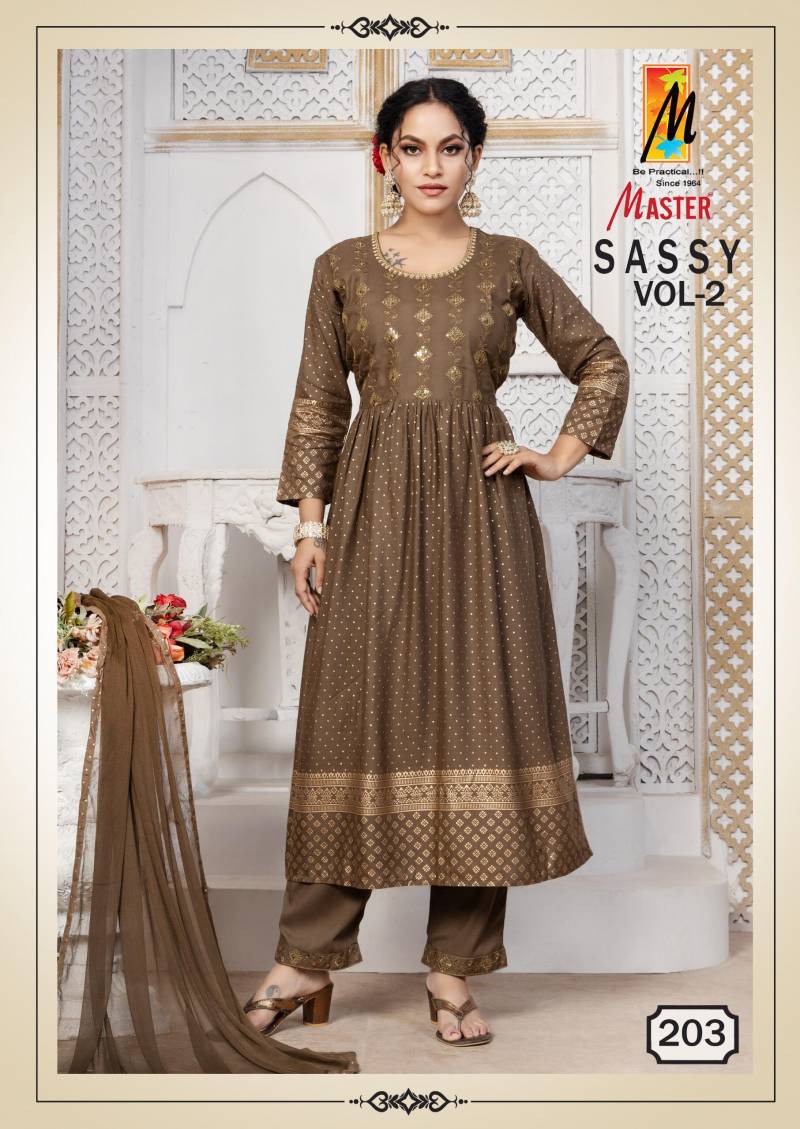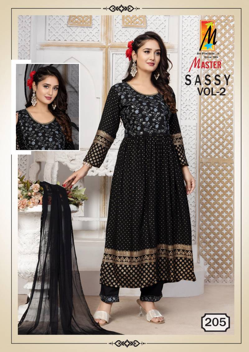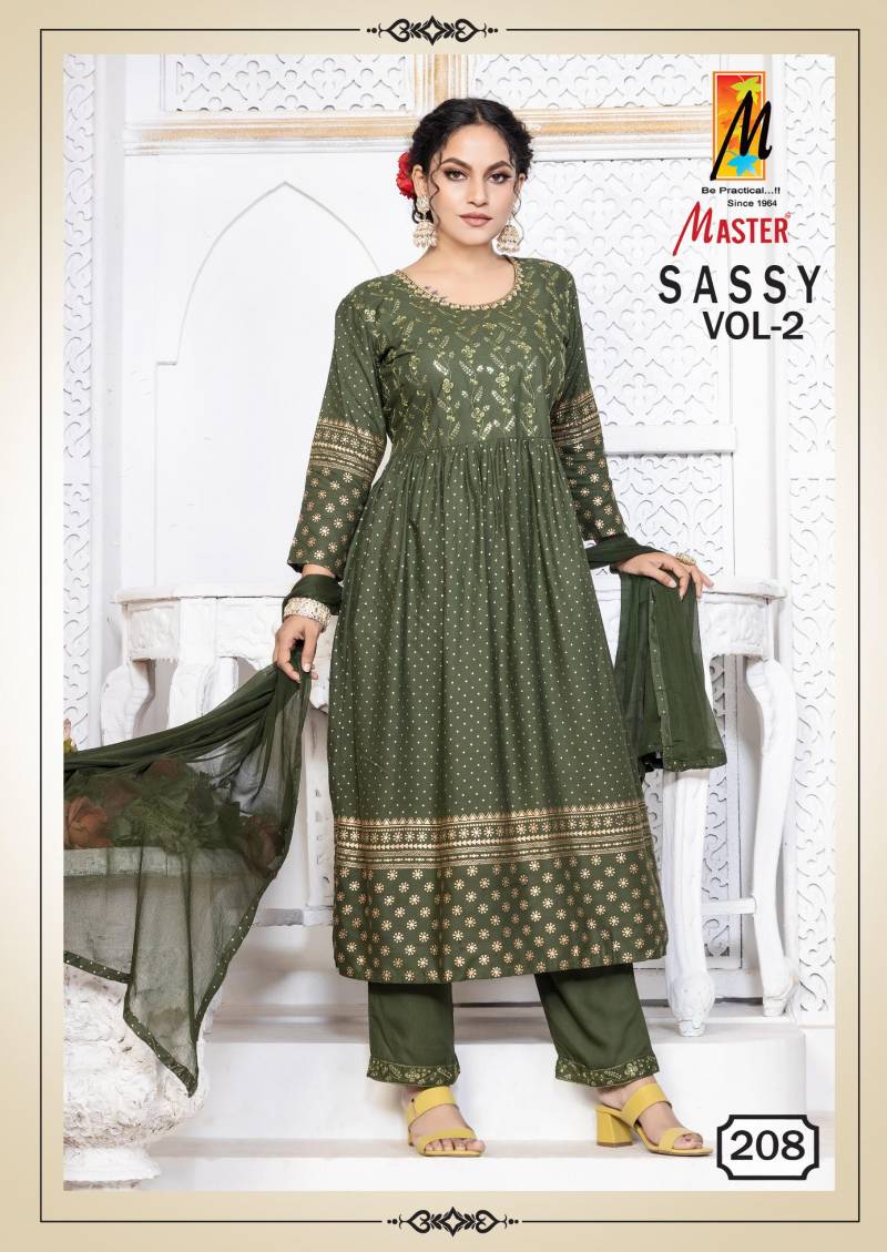 Master Sassy Vol 2 Rayon Printed Kurti Bottom With Dupatta Wholesale Price