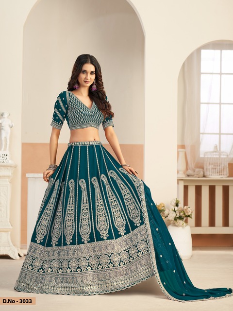 Designer Lehenga Choli Wholesale Mehvish Vol 33 in premium faux Georgette with fancy ethnic design and stylish flair. Perfect for party & special occasions. Buy at wholesale price from FashionExport. Latest bridal trends. Shop Now