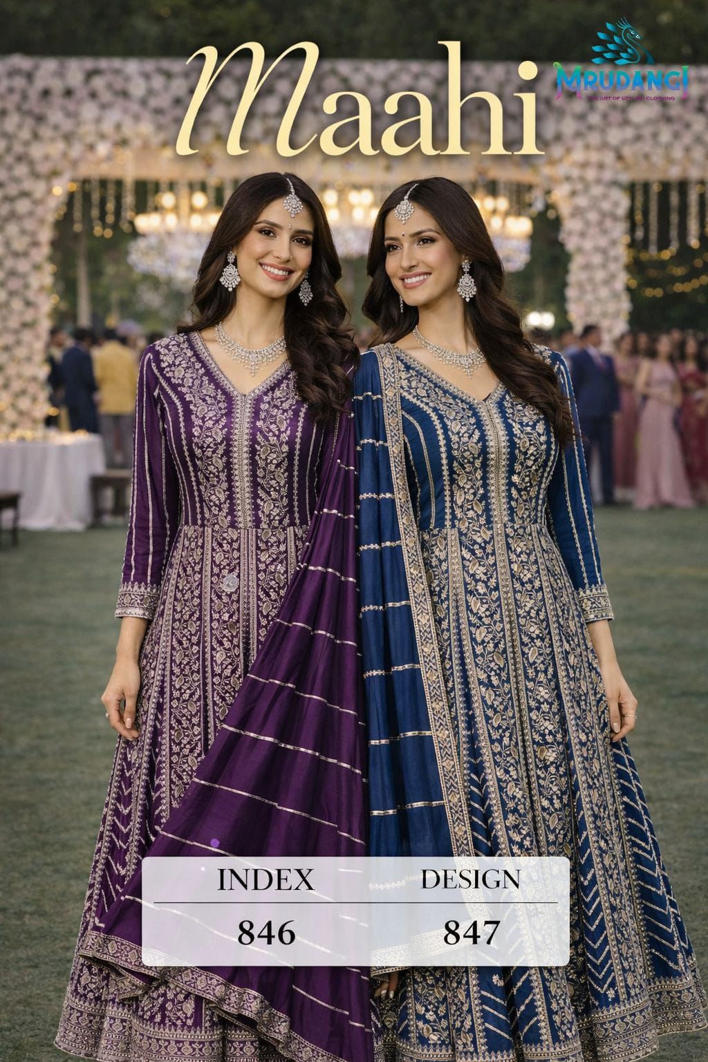 The Mrudangi Maahi Chinon Designer Gown With Dupatta Collection perfectly balances luxury design with wearable comfort, making it a must-have for boutiques, wholesalers, and online sellers.