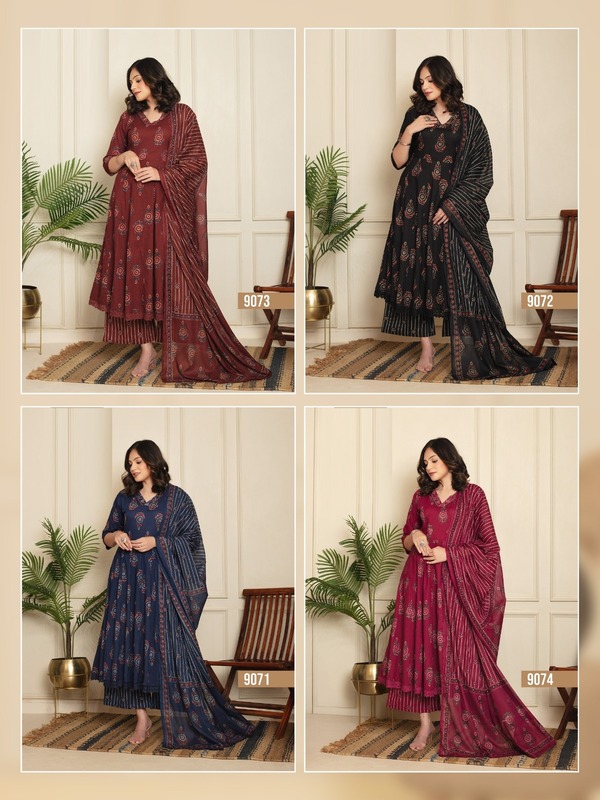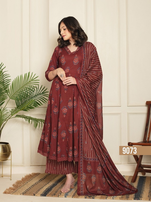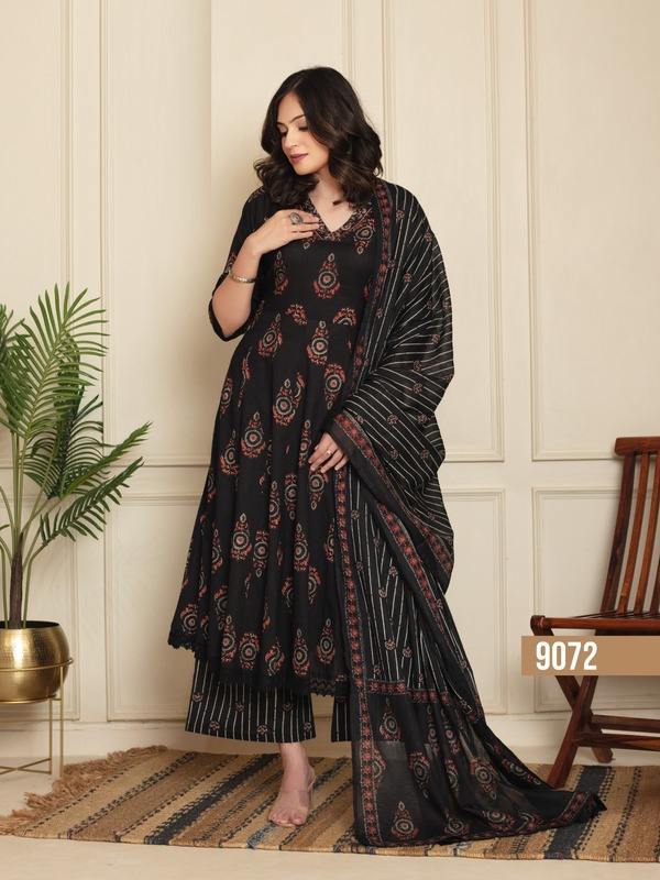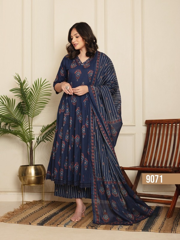 Discover the Naisha K 333 Cotton Anarkali Kurti Plazzo Dupatta Collection—a perfect blend of comfort and style. Featuring soft cotton fabric, elegant Anarkali designs, and matching plazzo bottoms with a coordinating dupatta, this collection is ideal for festive occasions and casual wear. Shop now for graceful, everyday elegance.