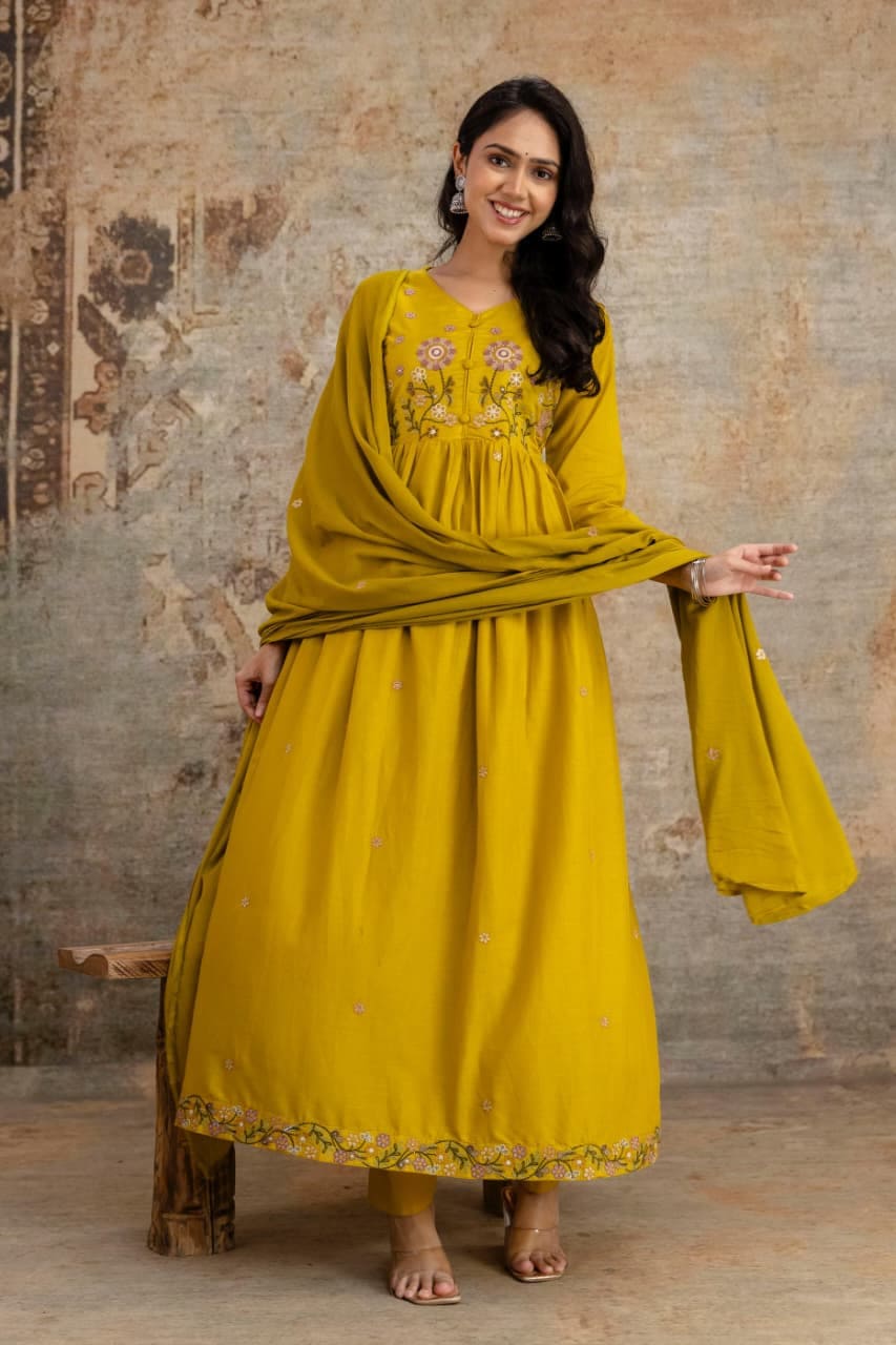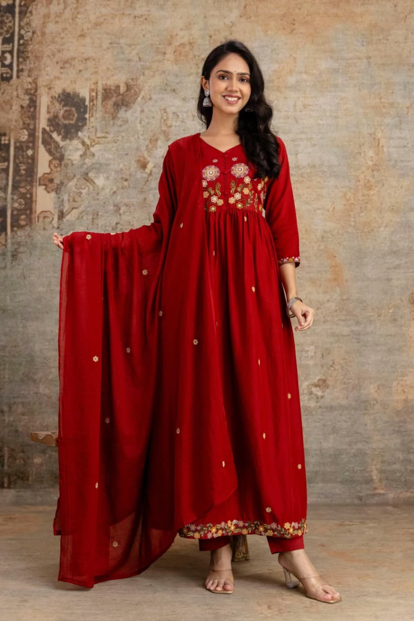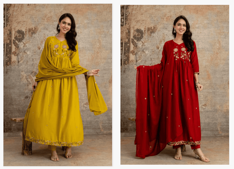 Discover the Naisha K 334 Mulmul Cotton Anarkali Kurti set with matching bottom and dupatta. Perfect for casual and festive occasions, this breathable cotton ensemble offers elegance, comfort, and traditional charm in one beautiful collection.