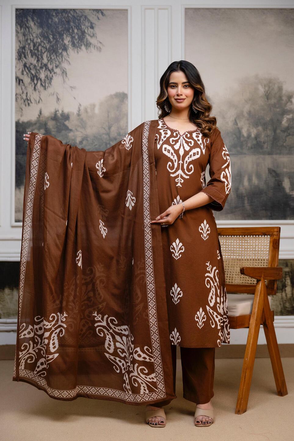 | Fabric Description | Cotton || Top/Bottom/Dupatta :- Cotton 60 60 Hadnworked | Size Set :- (38 To 46) |