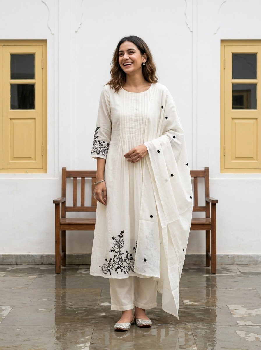 This coordinated outfit provides a ready-to-wear solution, ensuring a polished and stylish look. Retailers dealing with designer kurtis wholesale suppliers categories often prefer such complete sets due to their high demand.