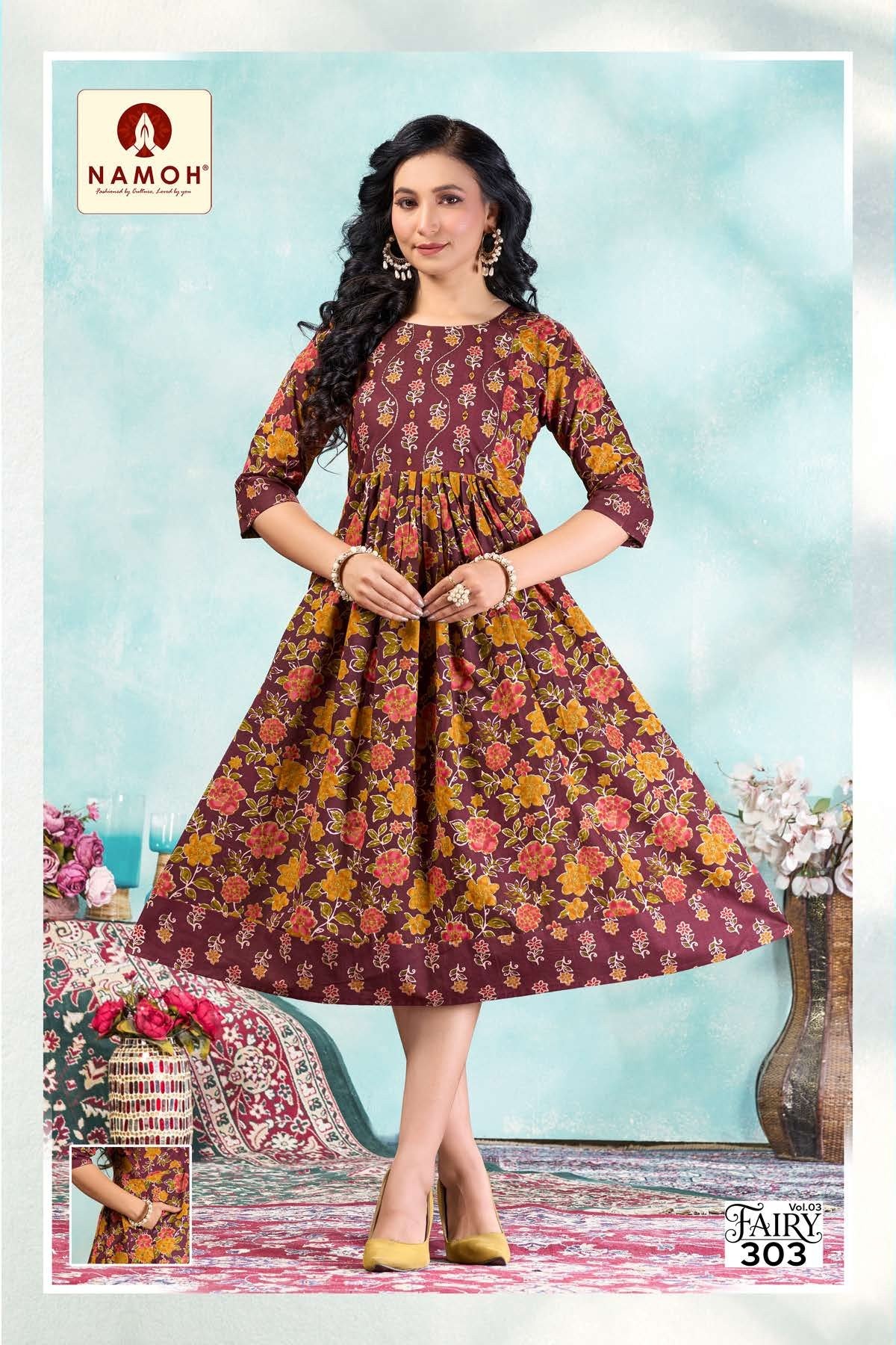 Retailers and wholesalers prefer collections that offer steady demand and good profit margins. The Namoh Fairy Vol 3 Cotton Anarkali Kurti Collection is suitable for boutiques, garment stores, and online fashion sellers. Buyers sourcing from Anarkali Kurtis Wholesale Supplier India collections benefit from stylish designs that attract customers of all age groups.