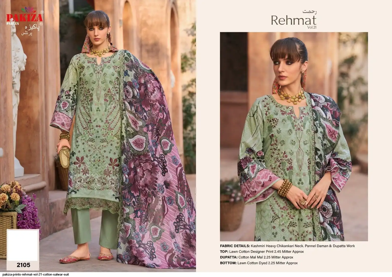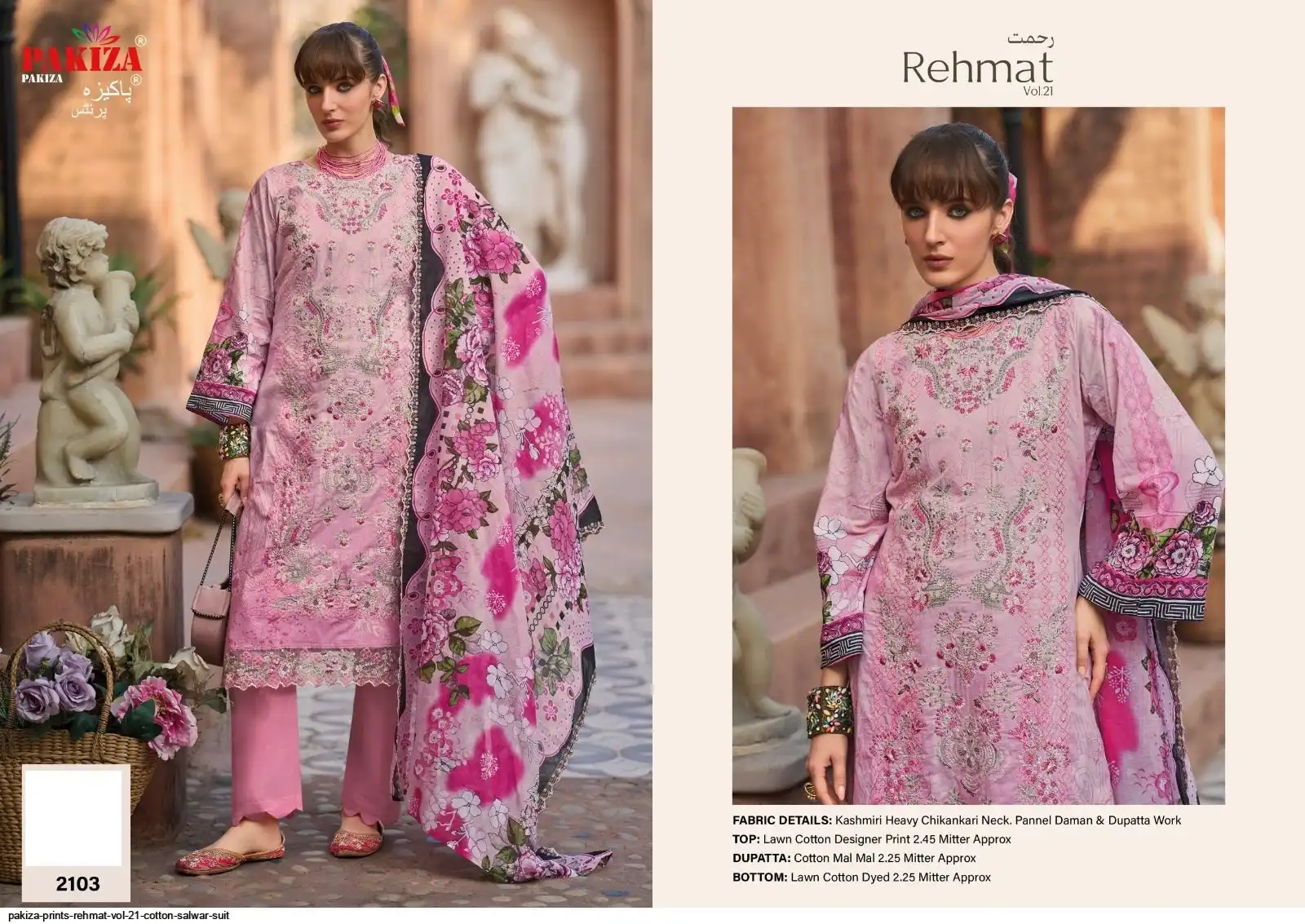 | Catalog Name | Pakiza Rehmat Vol 21 Kashmiri Work Lawn Cotton Salwar Suits |